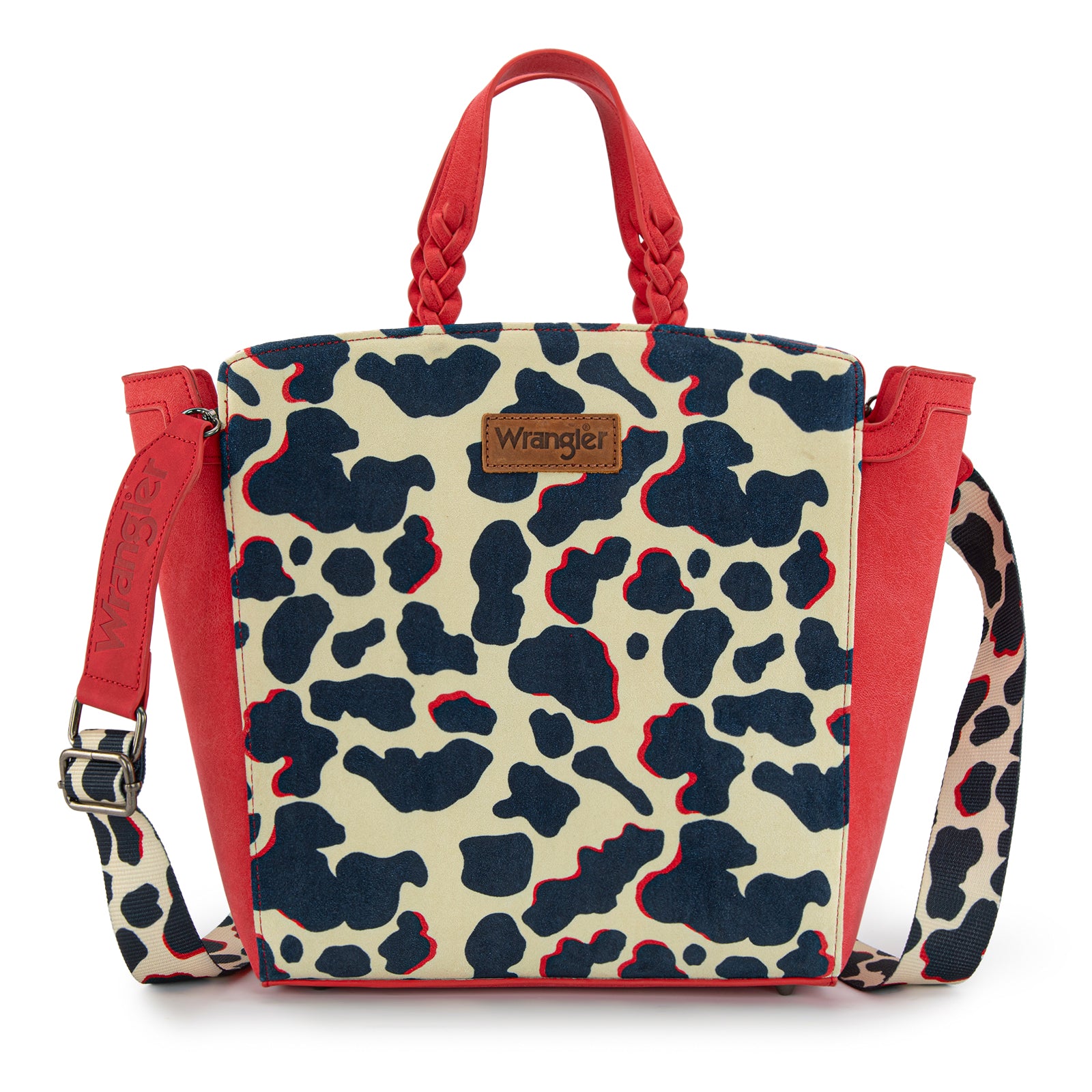 WG264-8014RD Wrangler Cow Print Concealed Carry Tote/Crossbody - Red