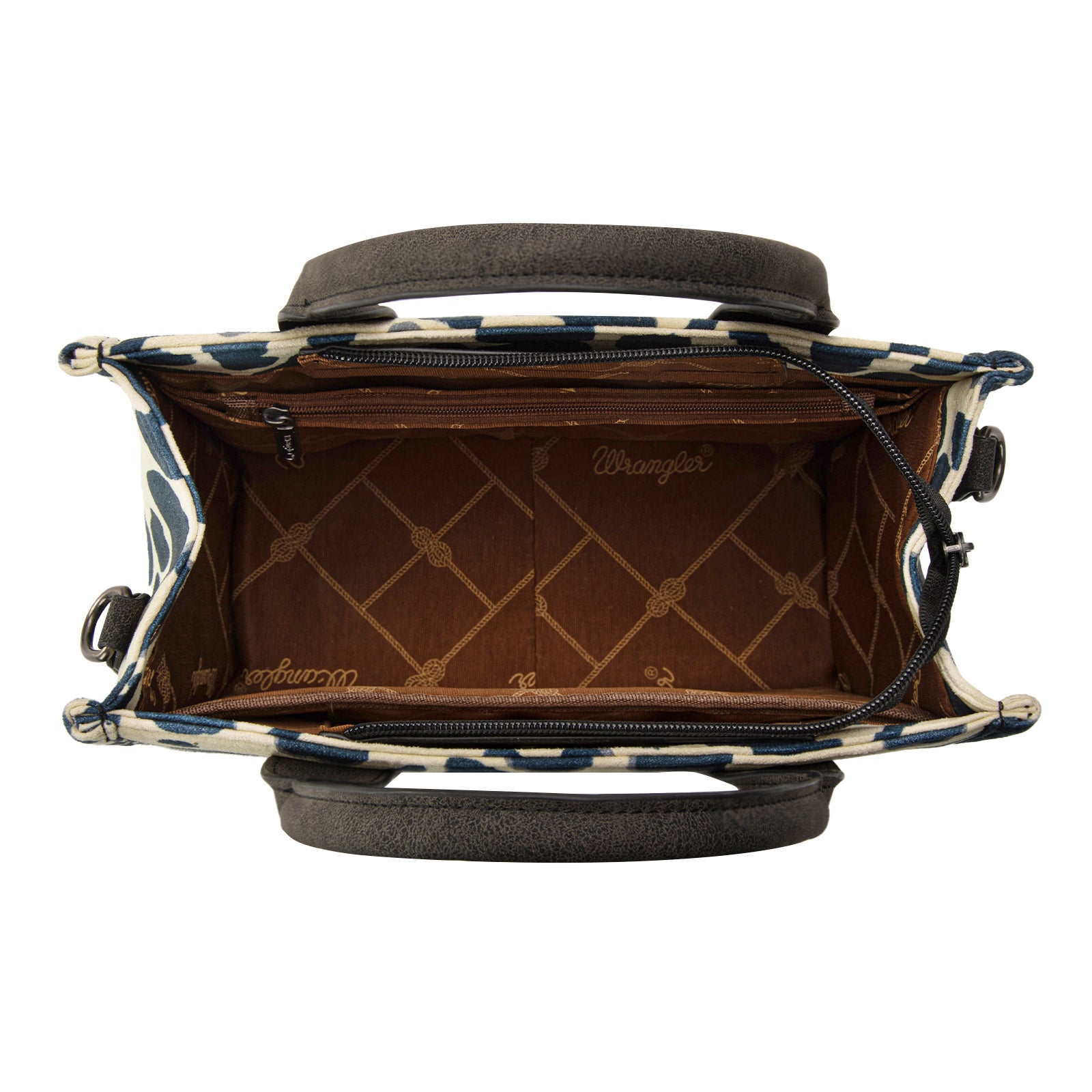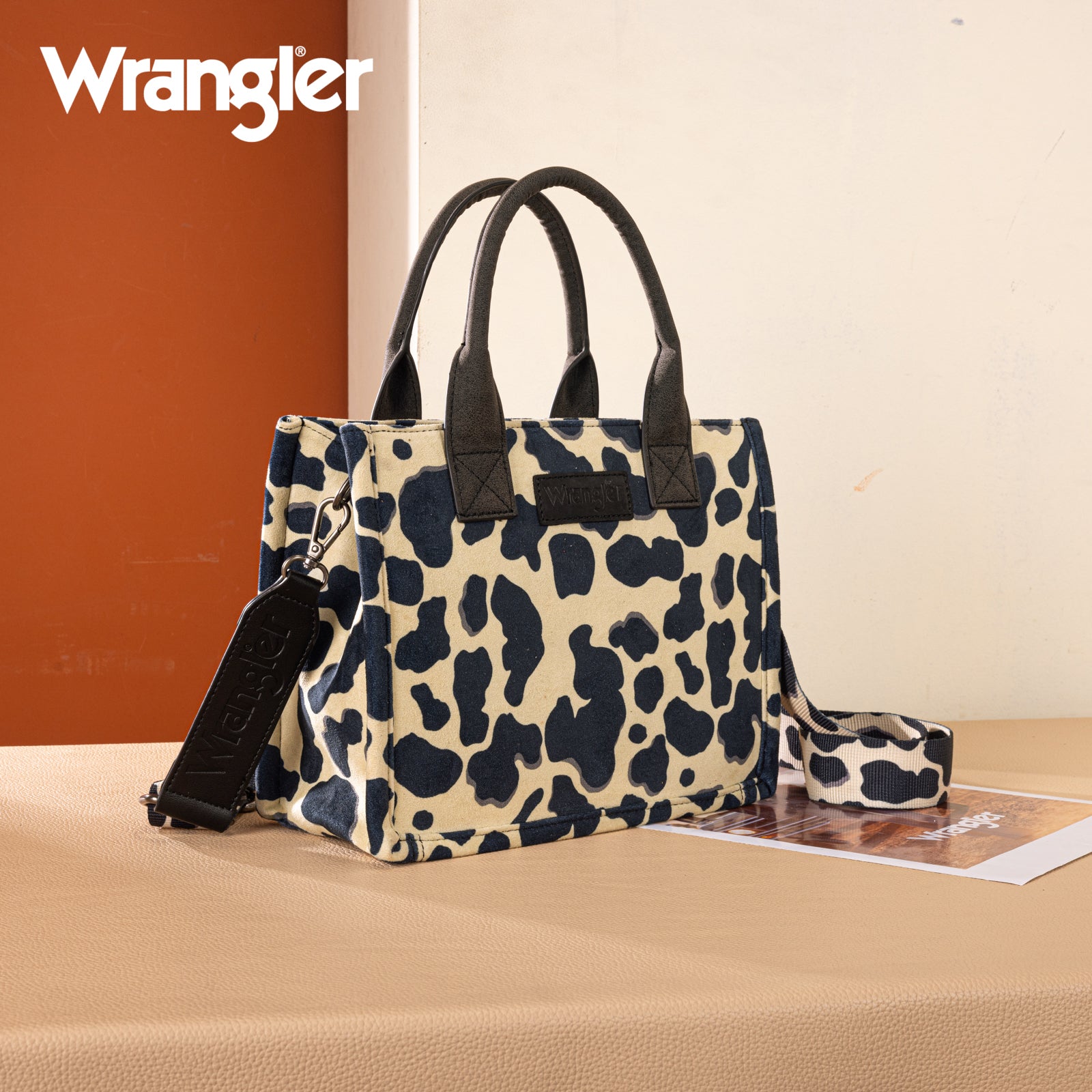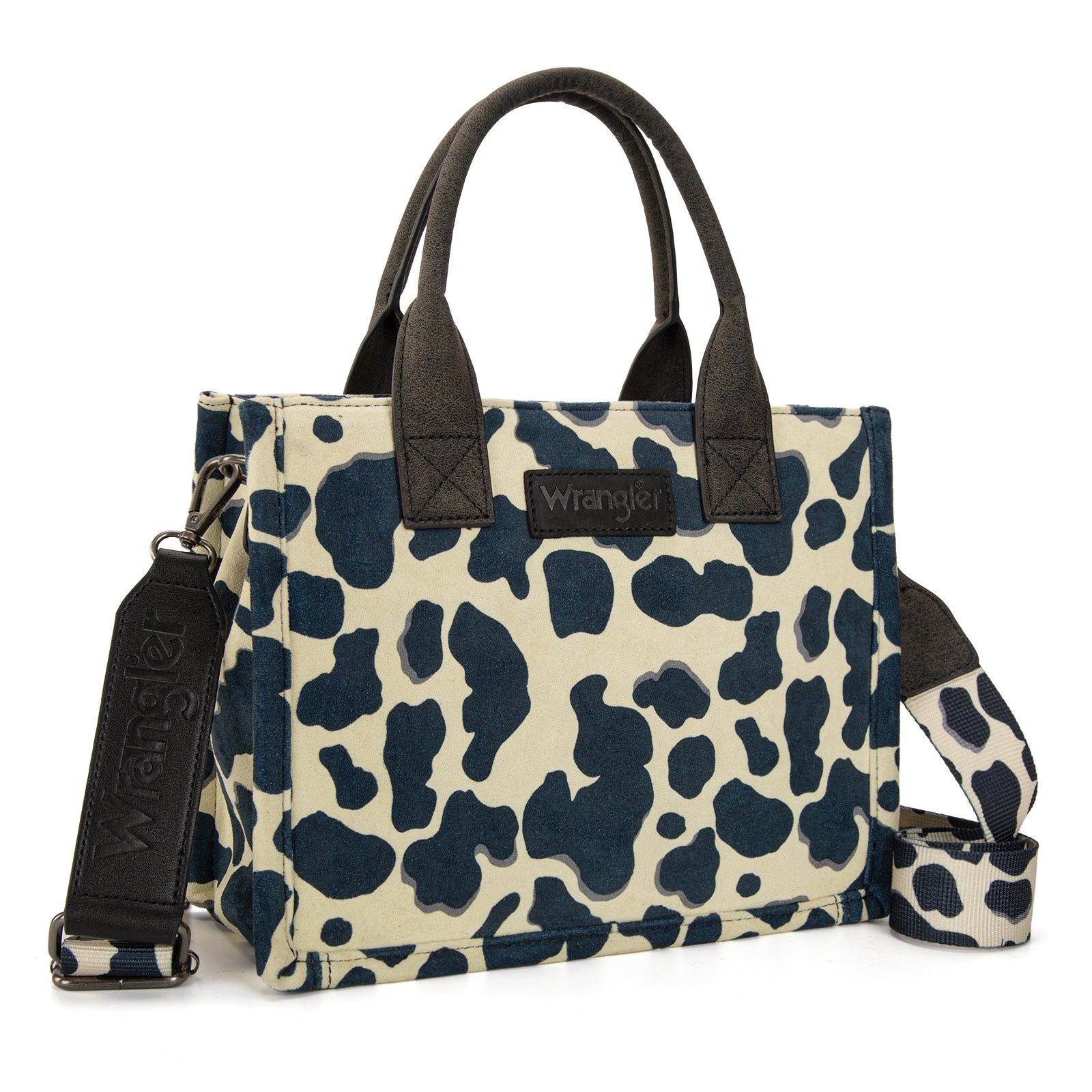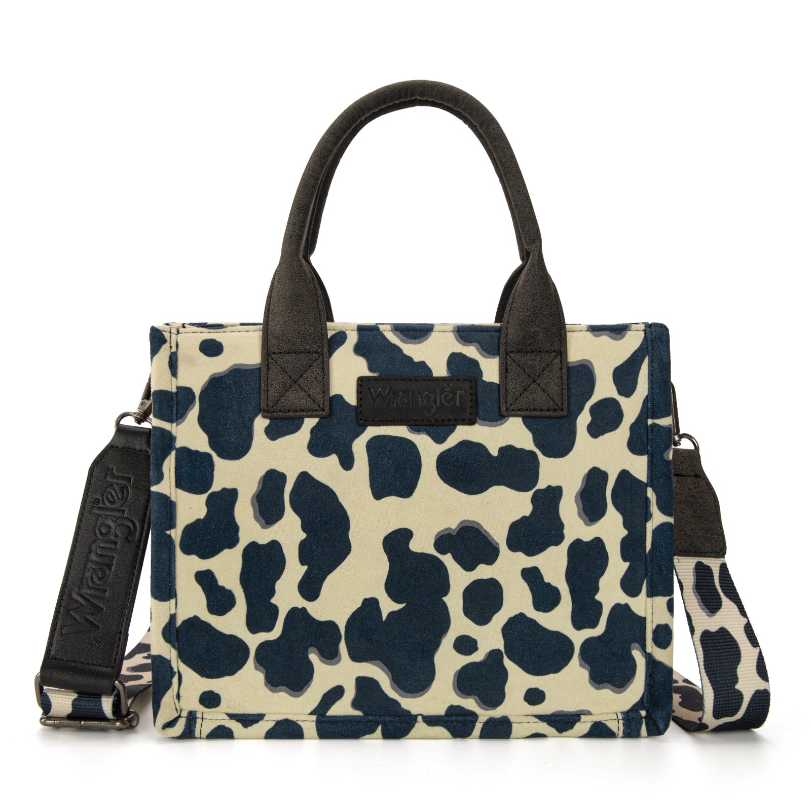 WG264-8120BK Wrangler Cow Print Concealed Carry Tote/Crossbody -Black