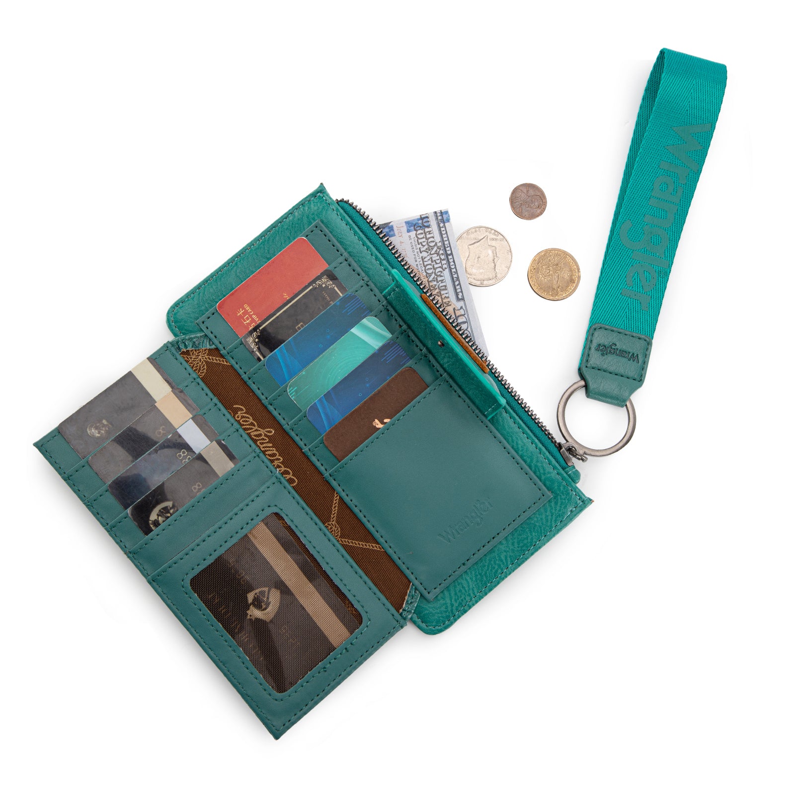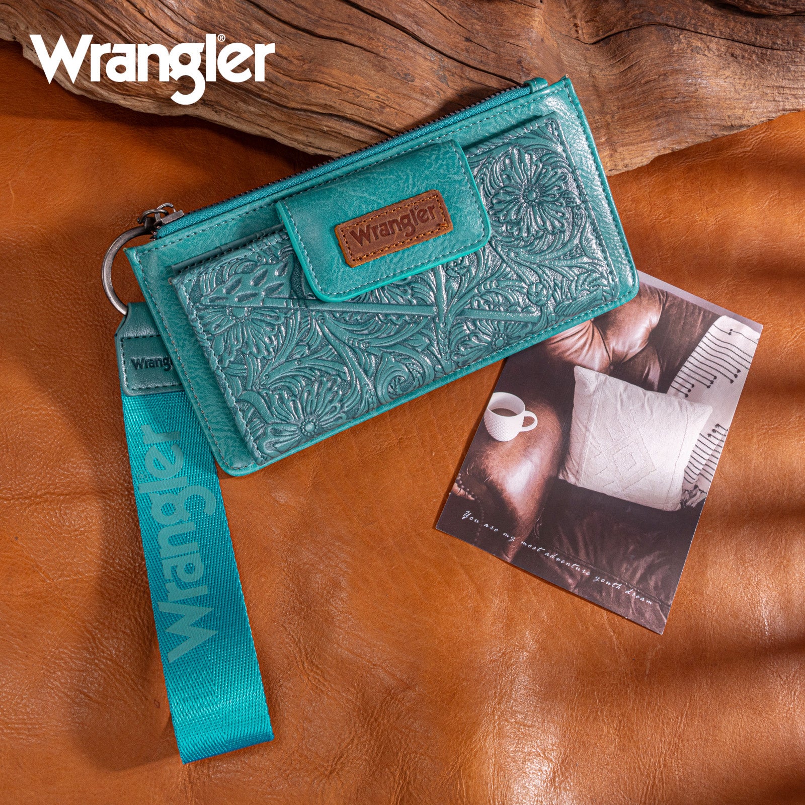 WG315-W013TQ Wrangler Floral Tooled Card Wallet/Wristlet - Turquoise