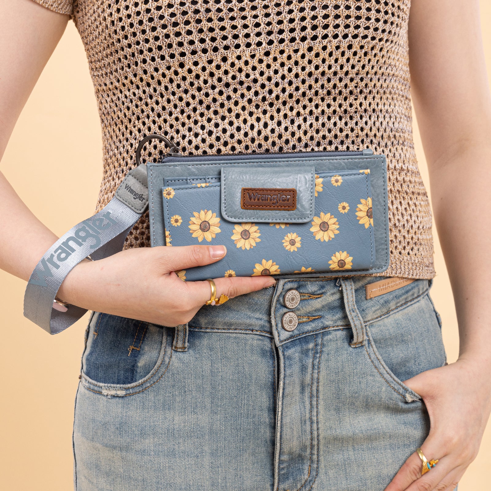 WG316-W013JN Wrangler Sunflower Print Card Wallet/Wristlet - Jean
