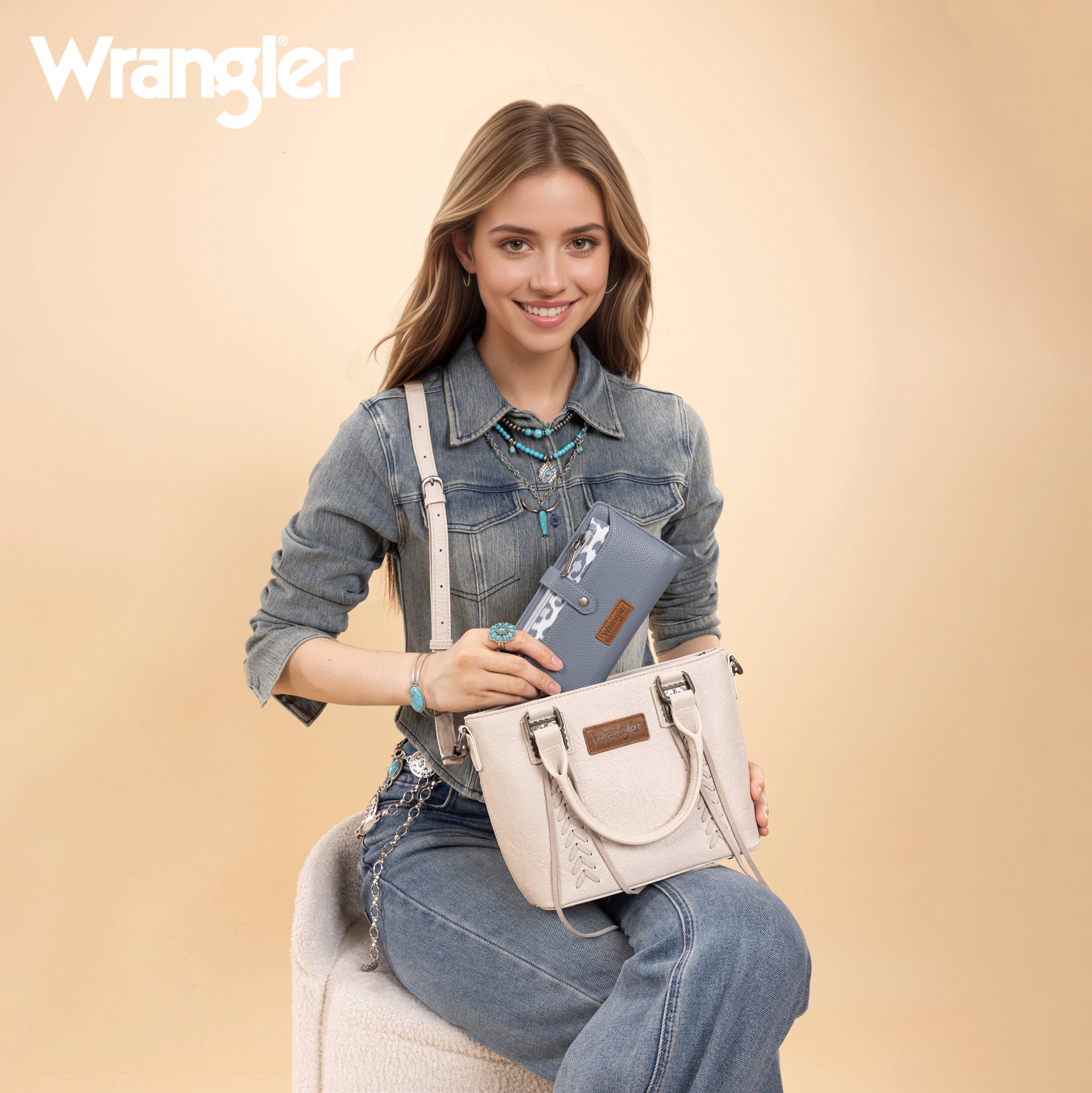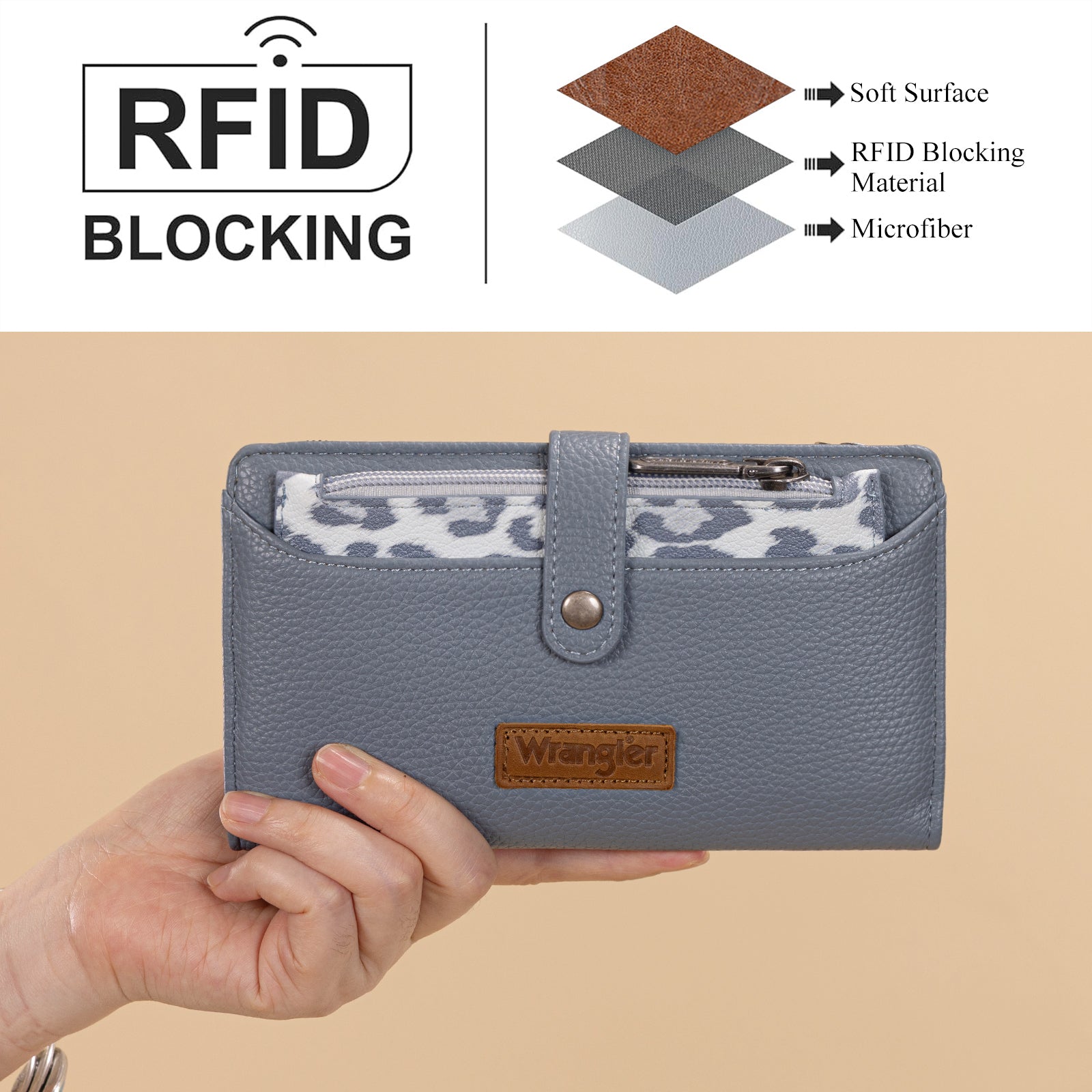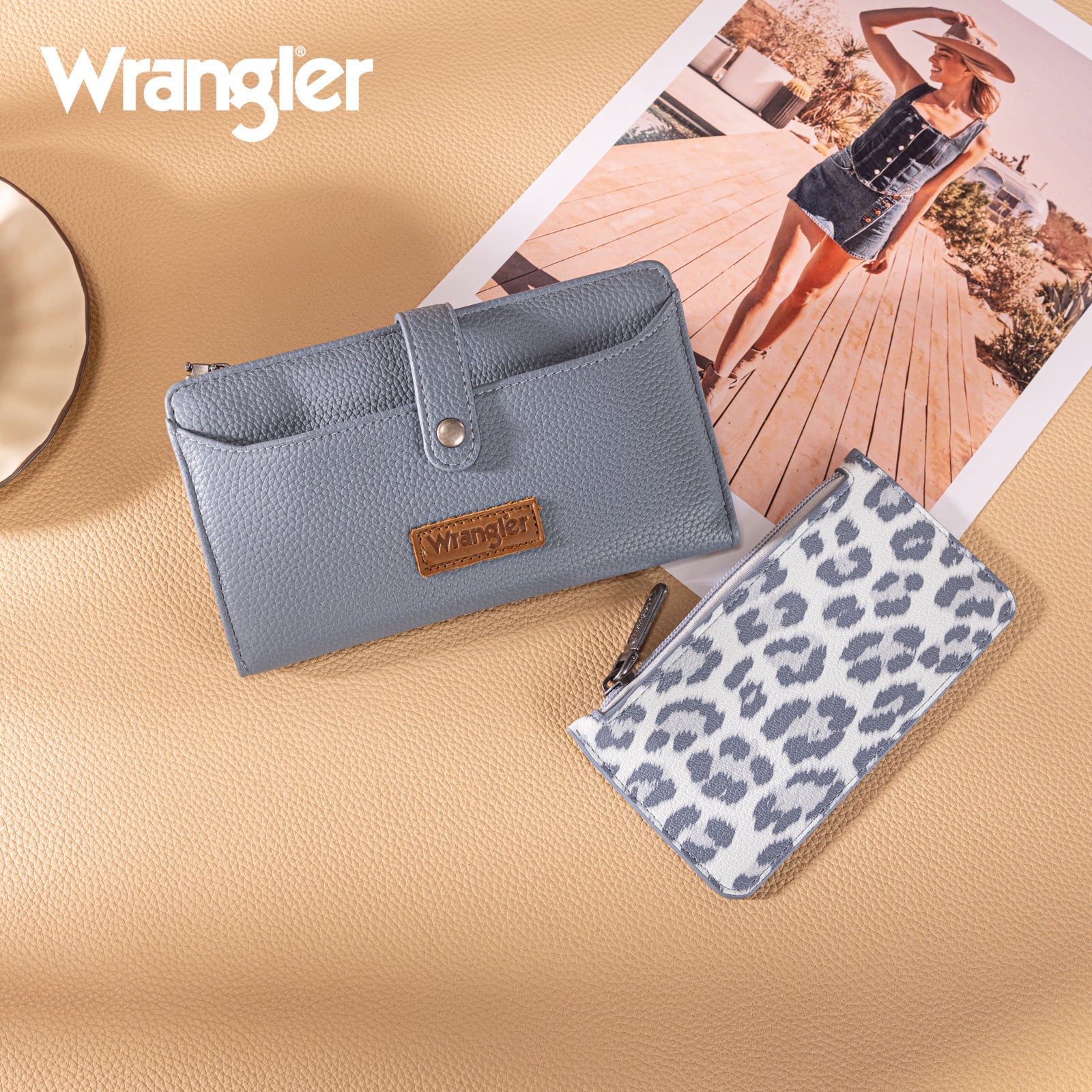WG366-W091JN Wrangler Western Bi-Fold RFID Wallet/Wristlet With Detachable Pouch- Jean