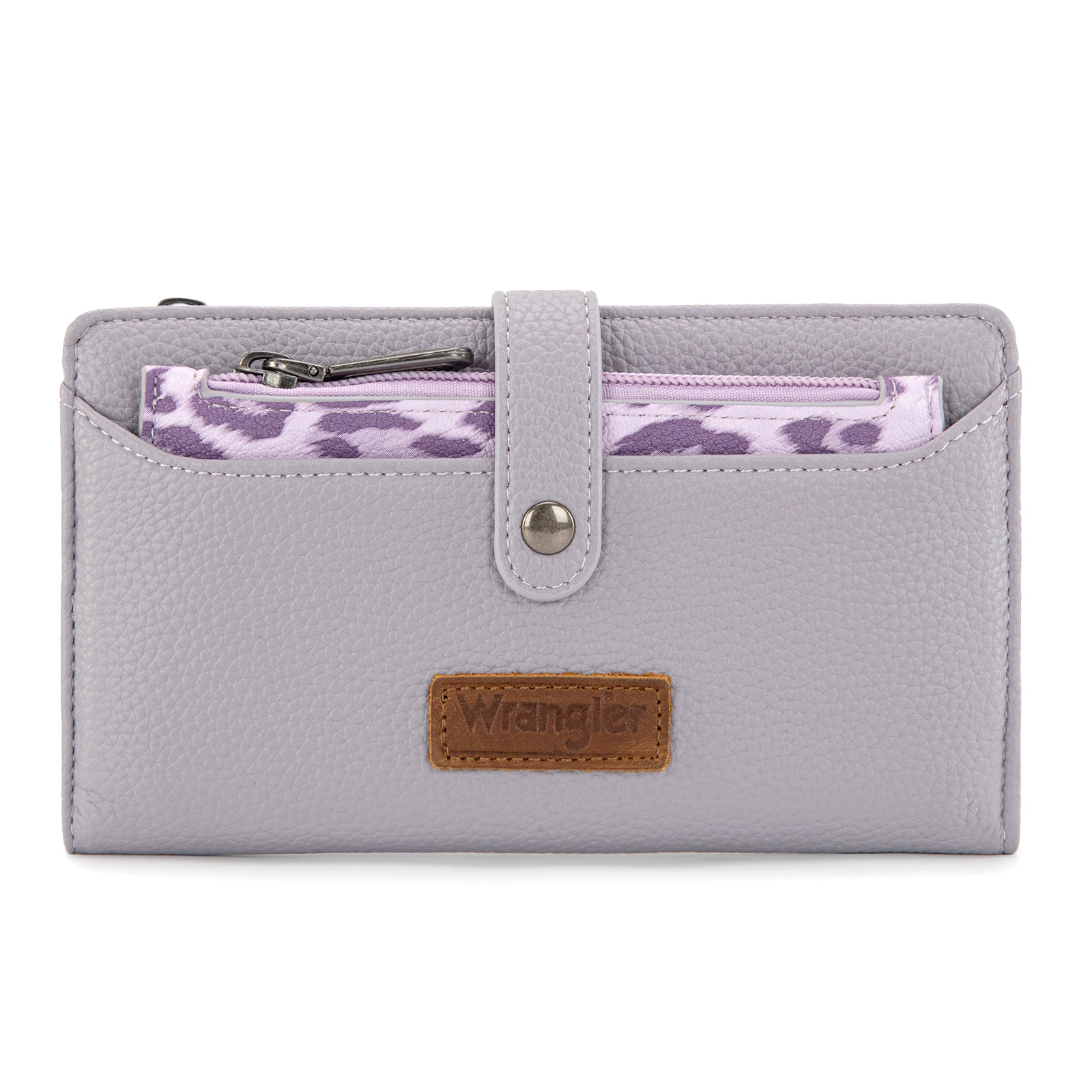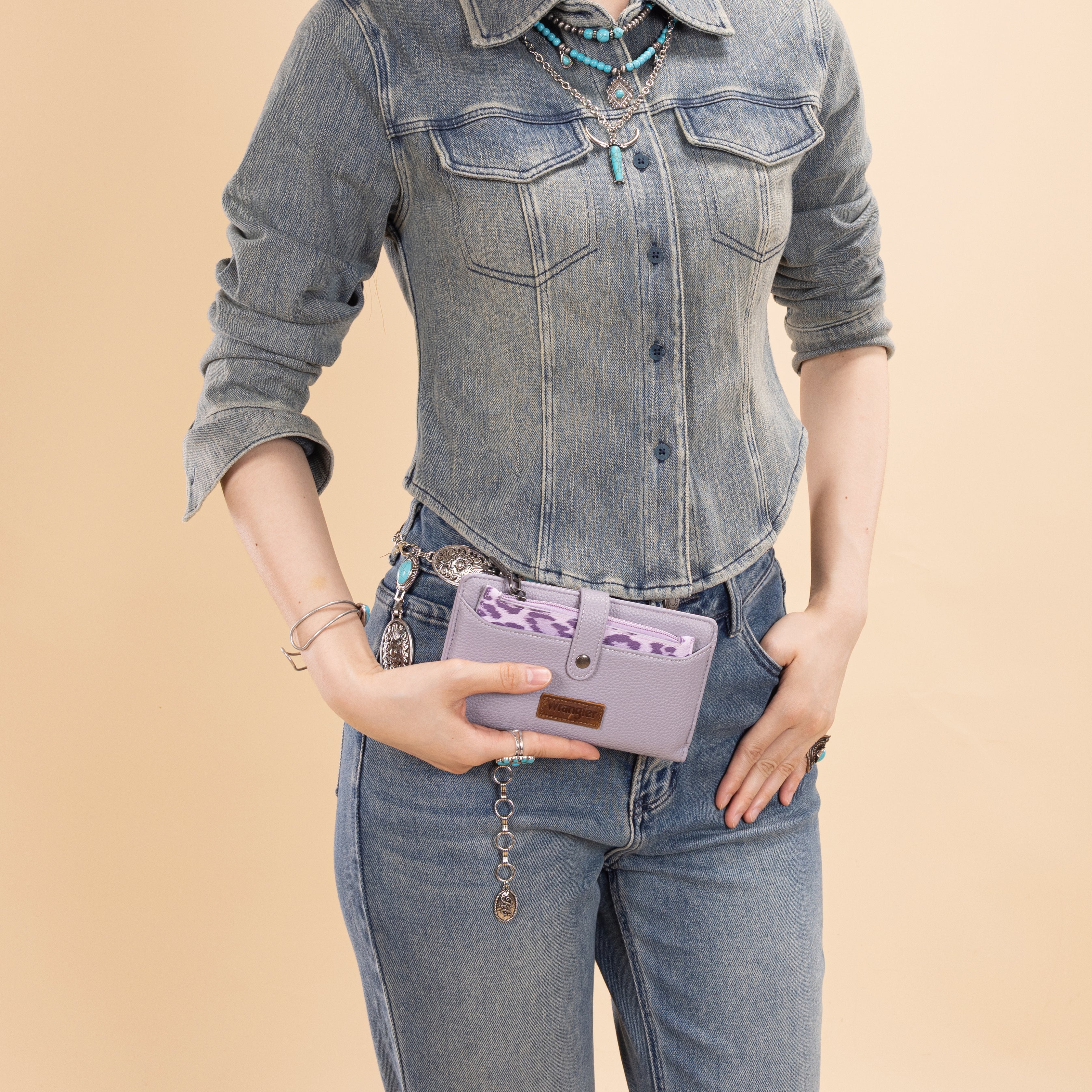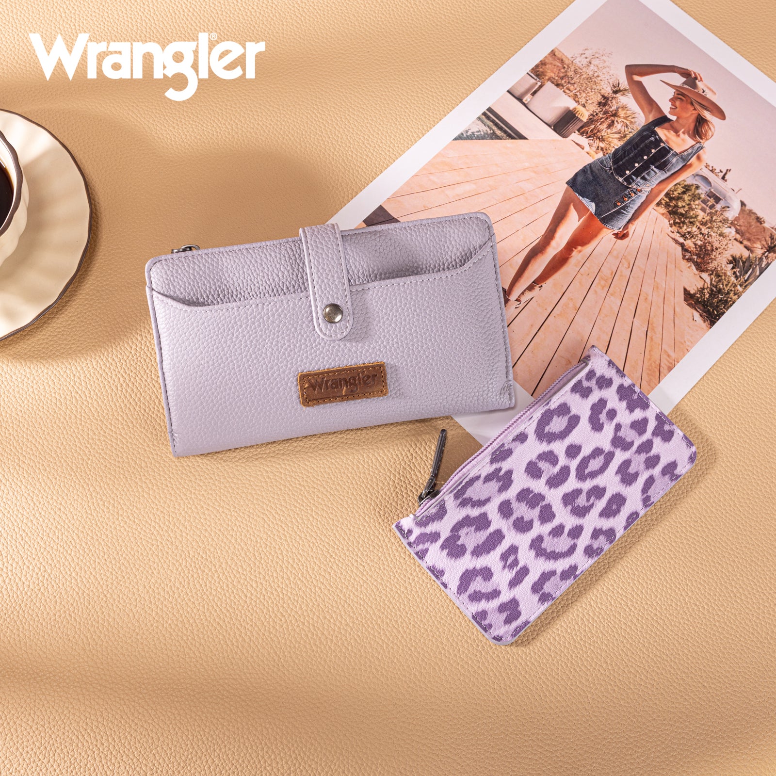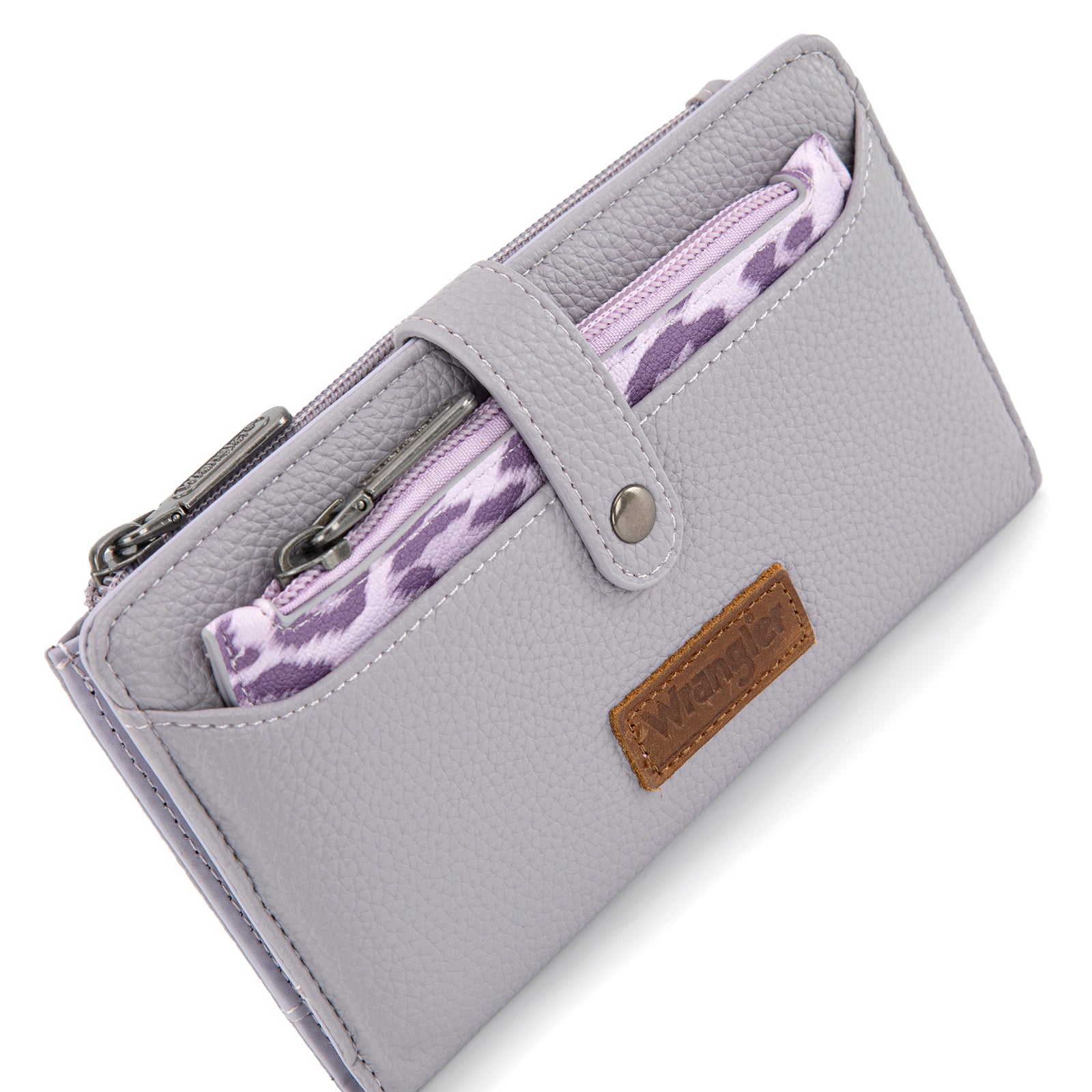 WG366-W091PP Wrangler Western Bi-Fold RFID Wallet/Wristlet With Detachable Pouch-Purple