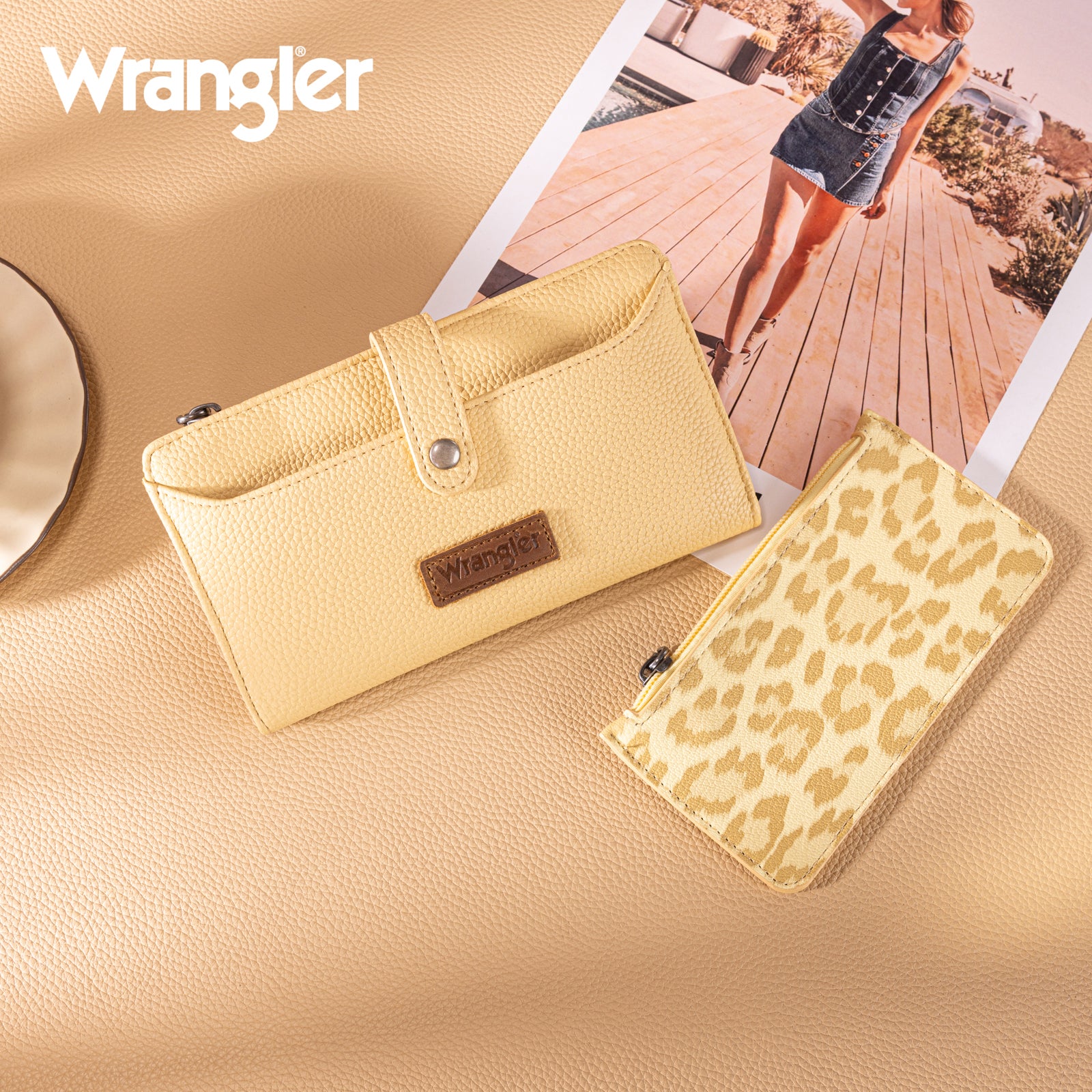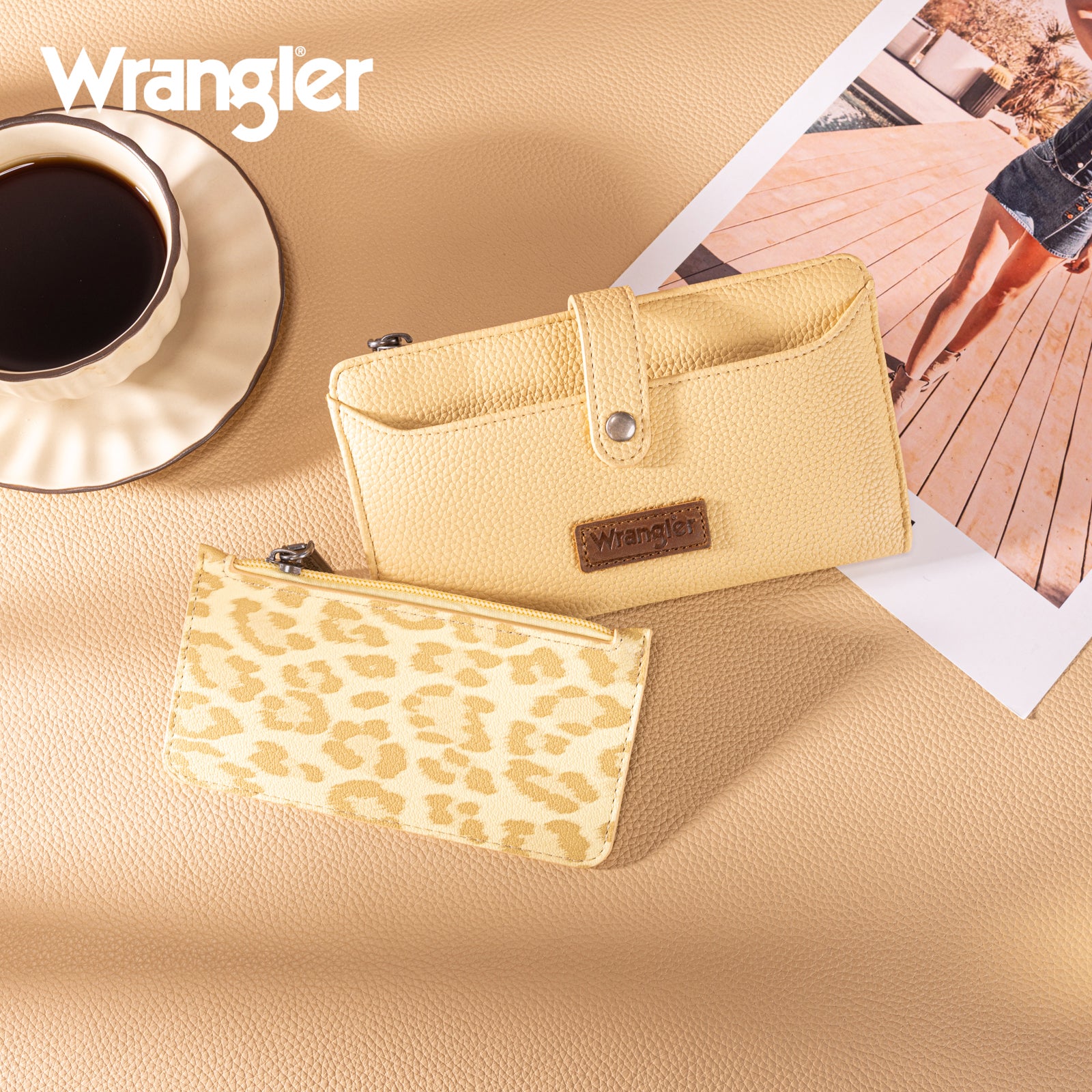 WG366-W091YL Wrangler Western Bi-Fold RFID Wallet/Wristlet With Detachable Pouch-Yellow