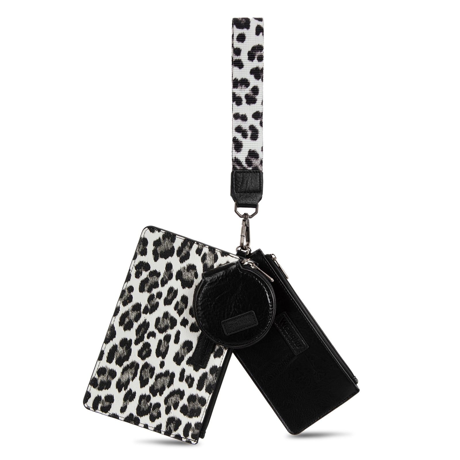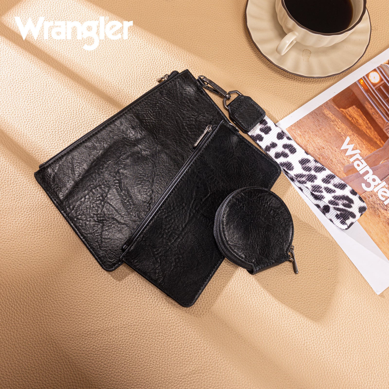 WG366-W114 Wrangler Leopard Print Dual Pouch Wristlet with Zipper Round Case- Black