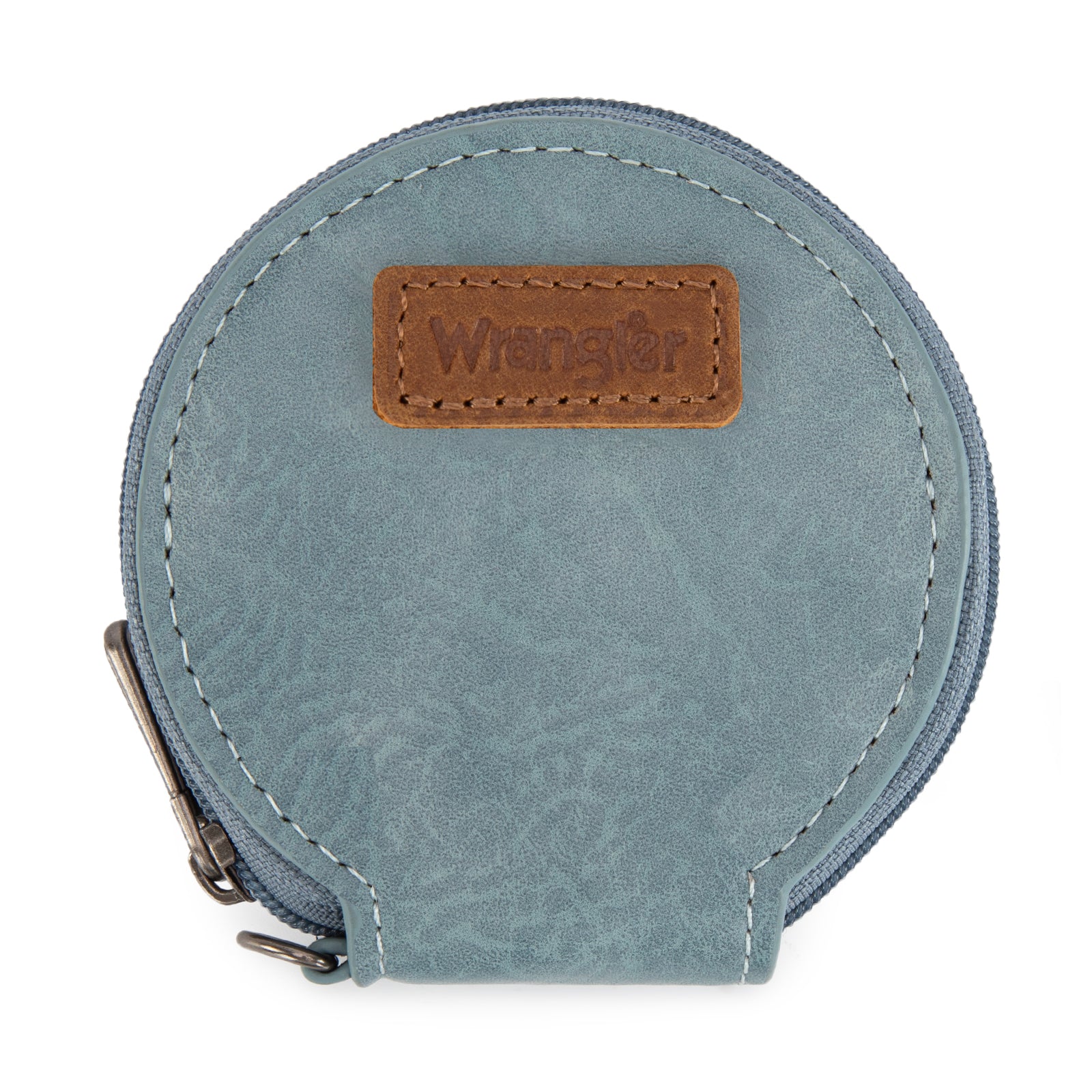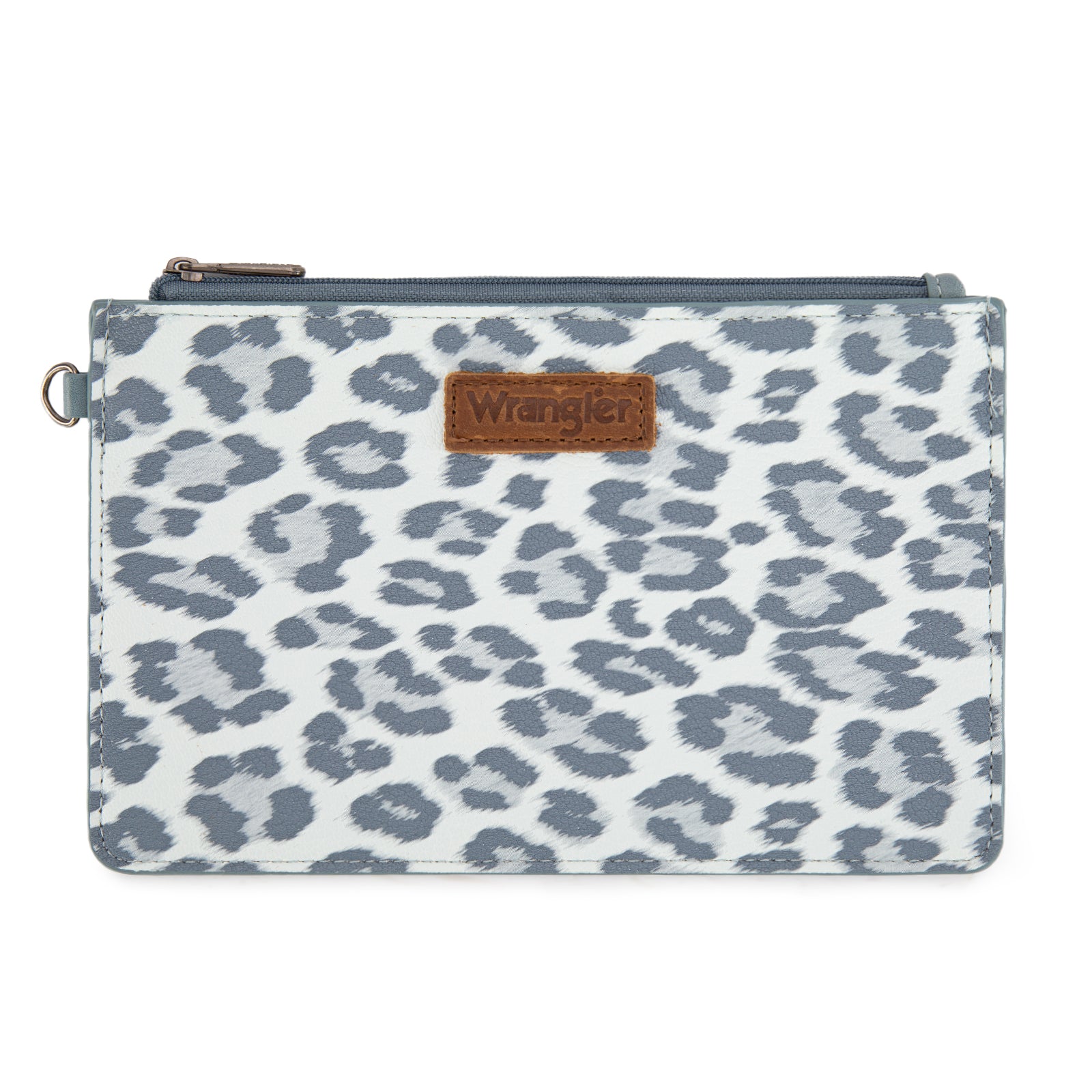 WG366-W114 Wrangler Leopard Print Dual Pouch Wristlet with Zipper Round Case-Jean