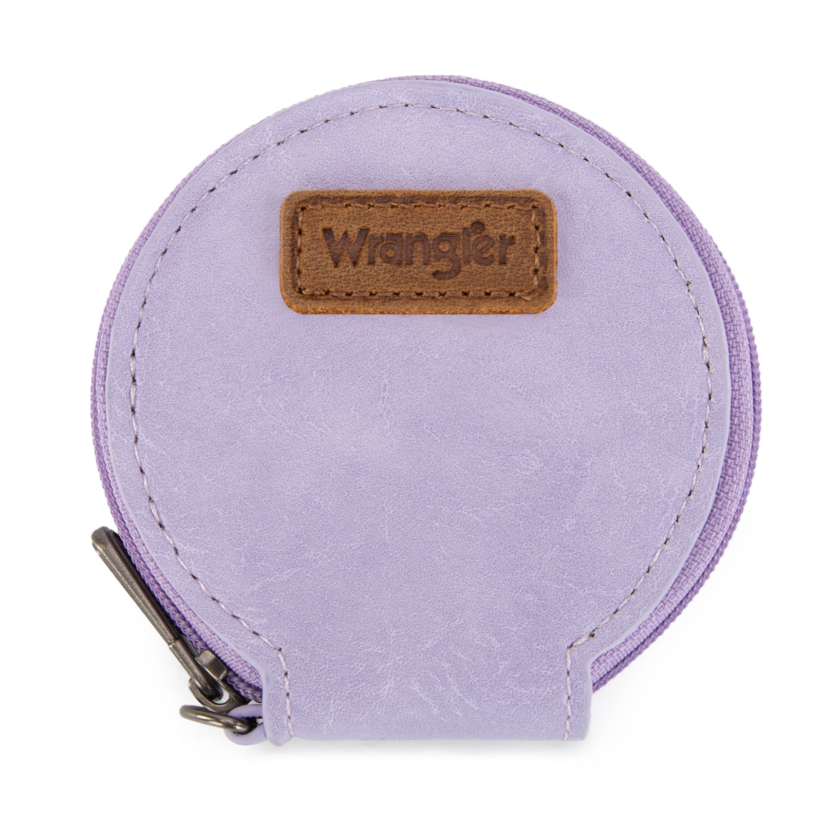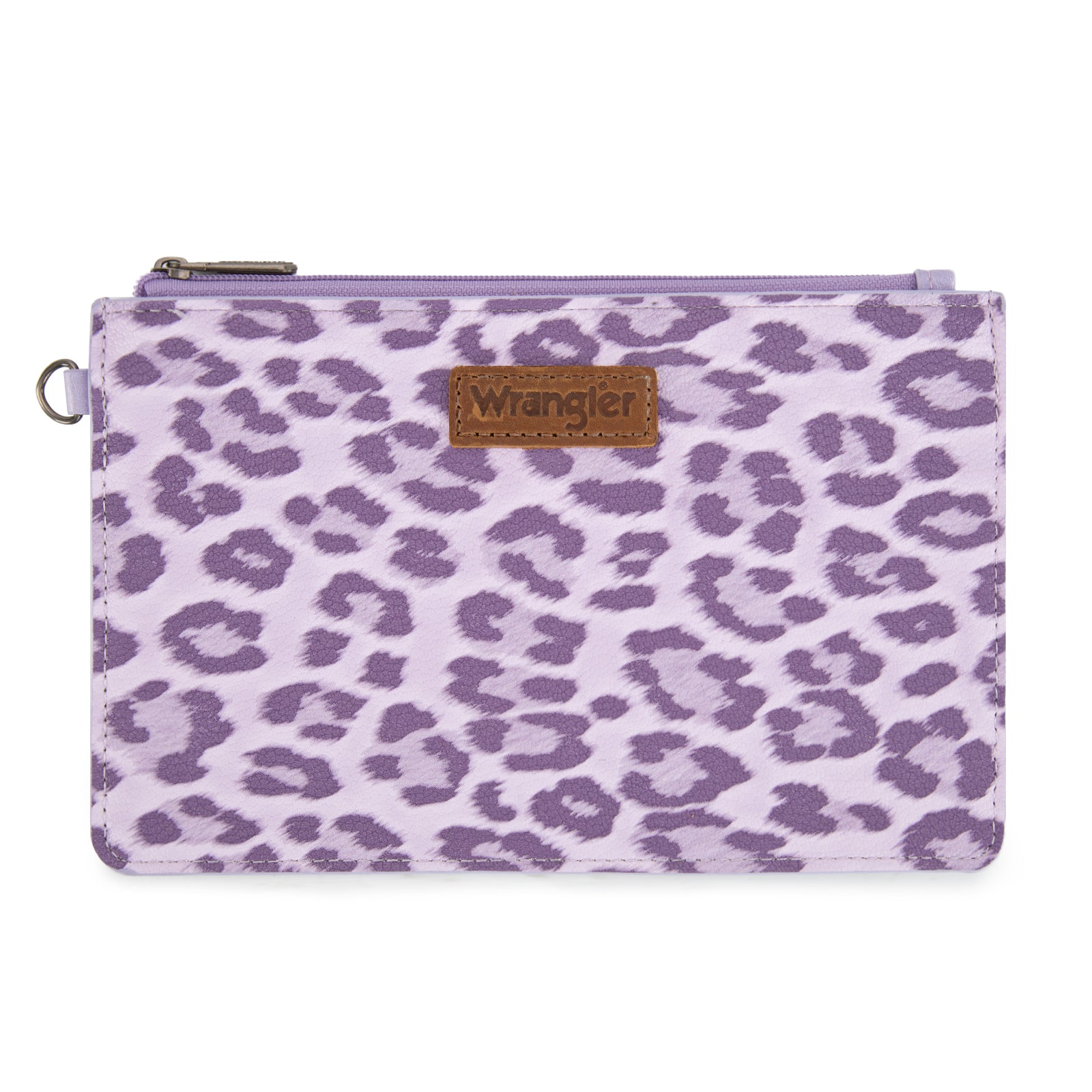WG366-W114 Wrangler Leopard Print Dual Pouch Wristlet with Zipper Round Case-Purple