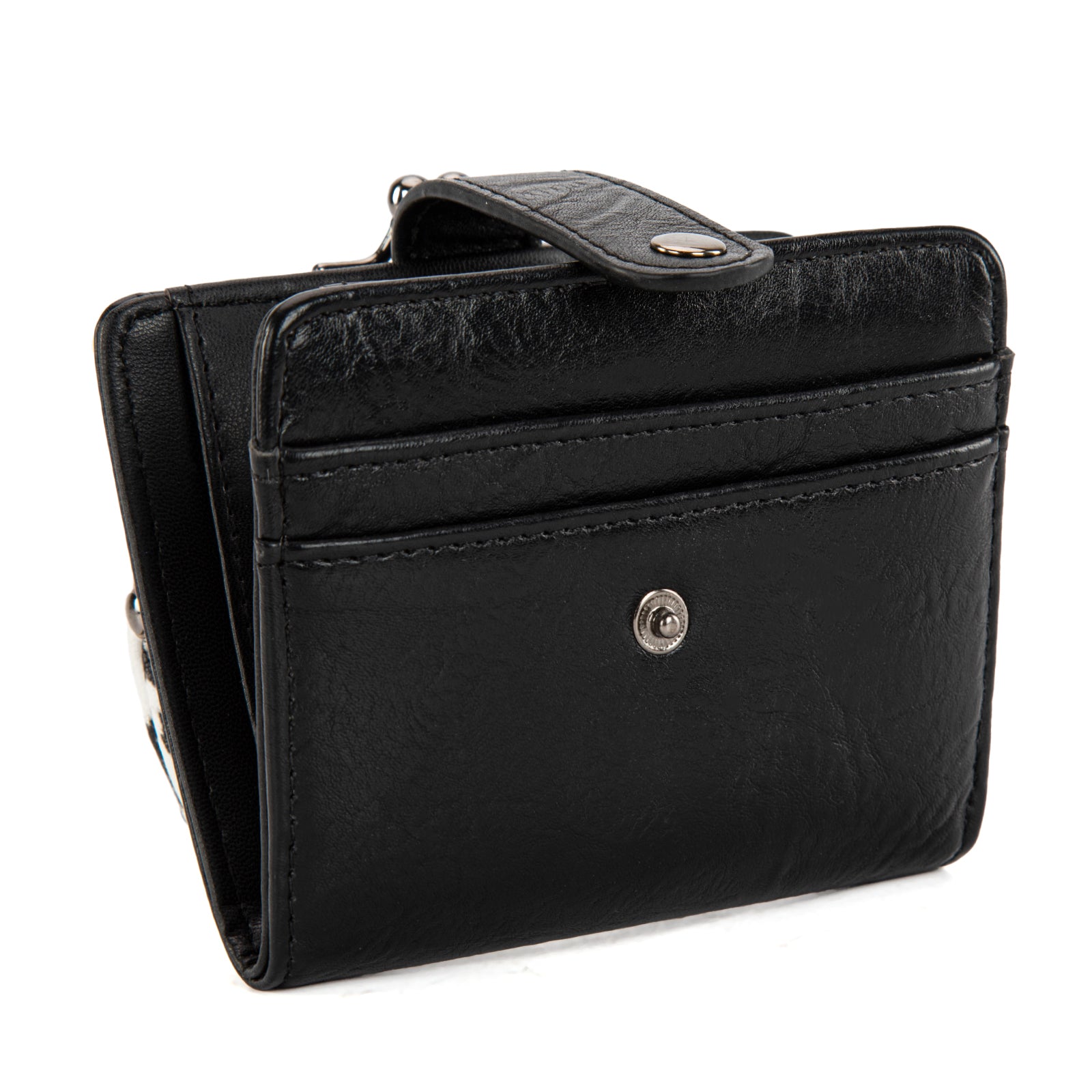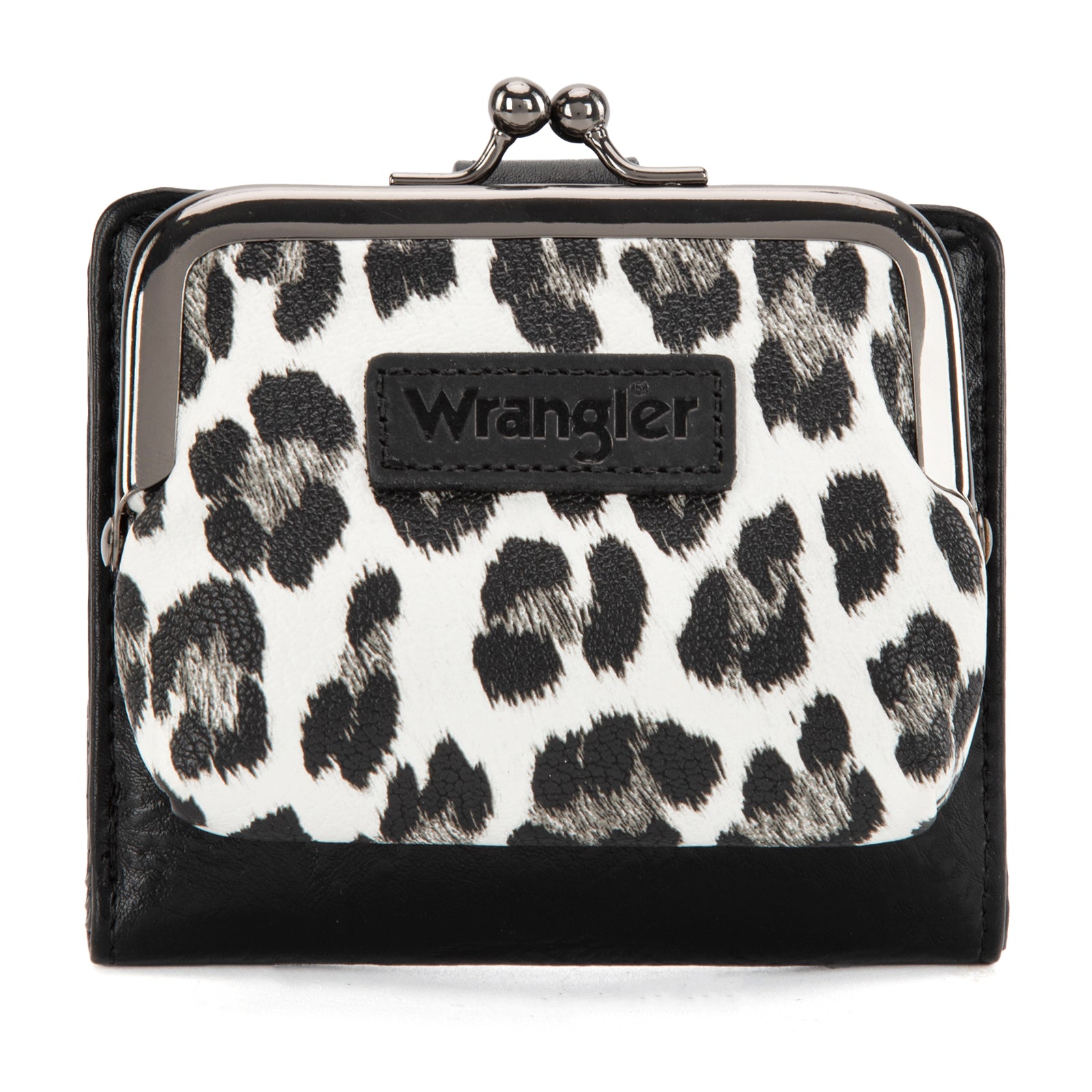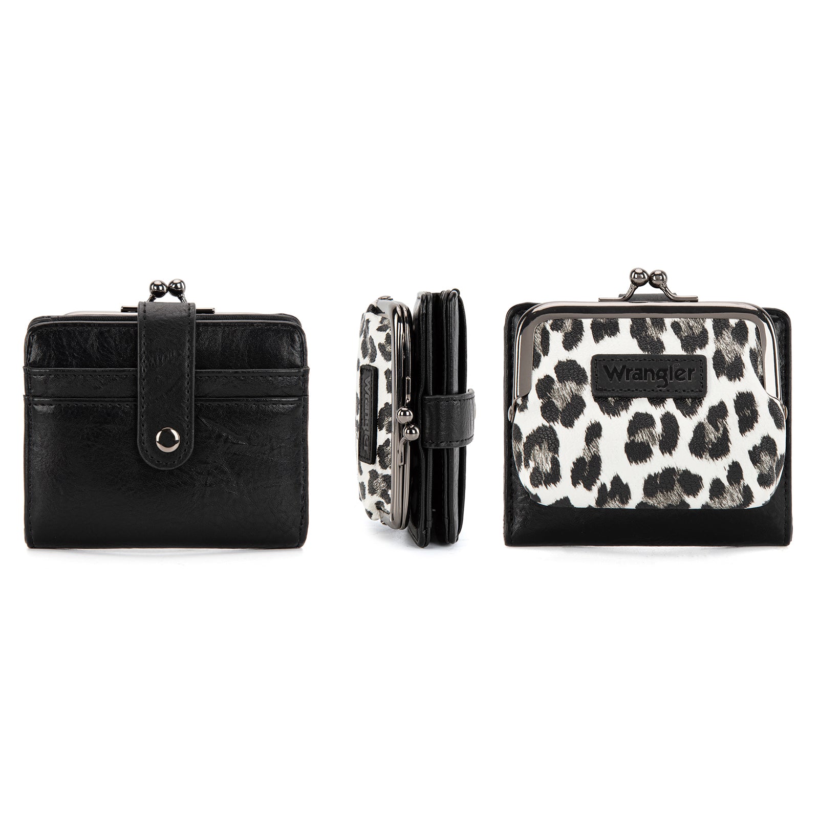 WG366-W116BK Wrangler Western Leopard Print Small Bi-Fold with Kiss Clasp Coin Purse -Black
