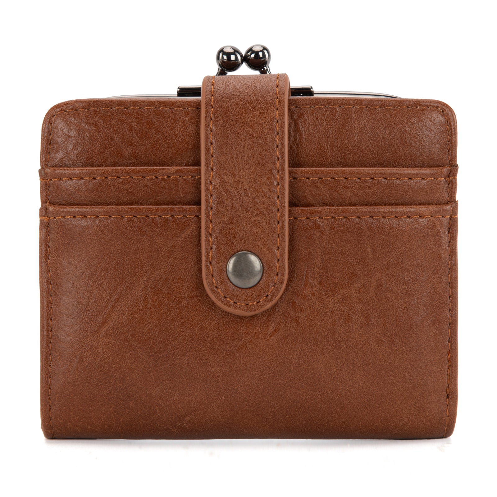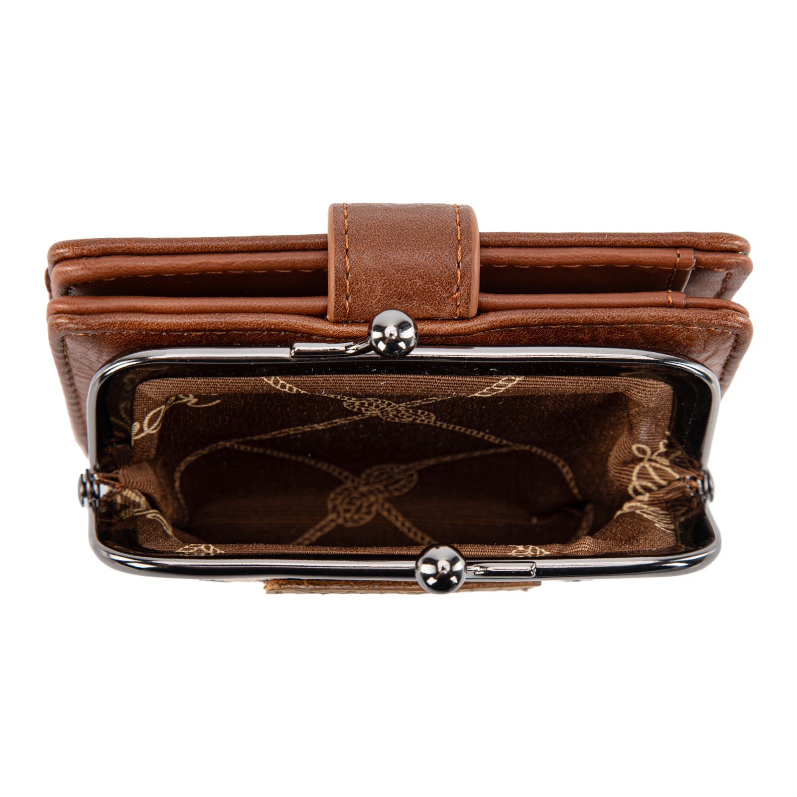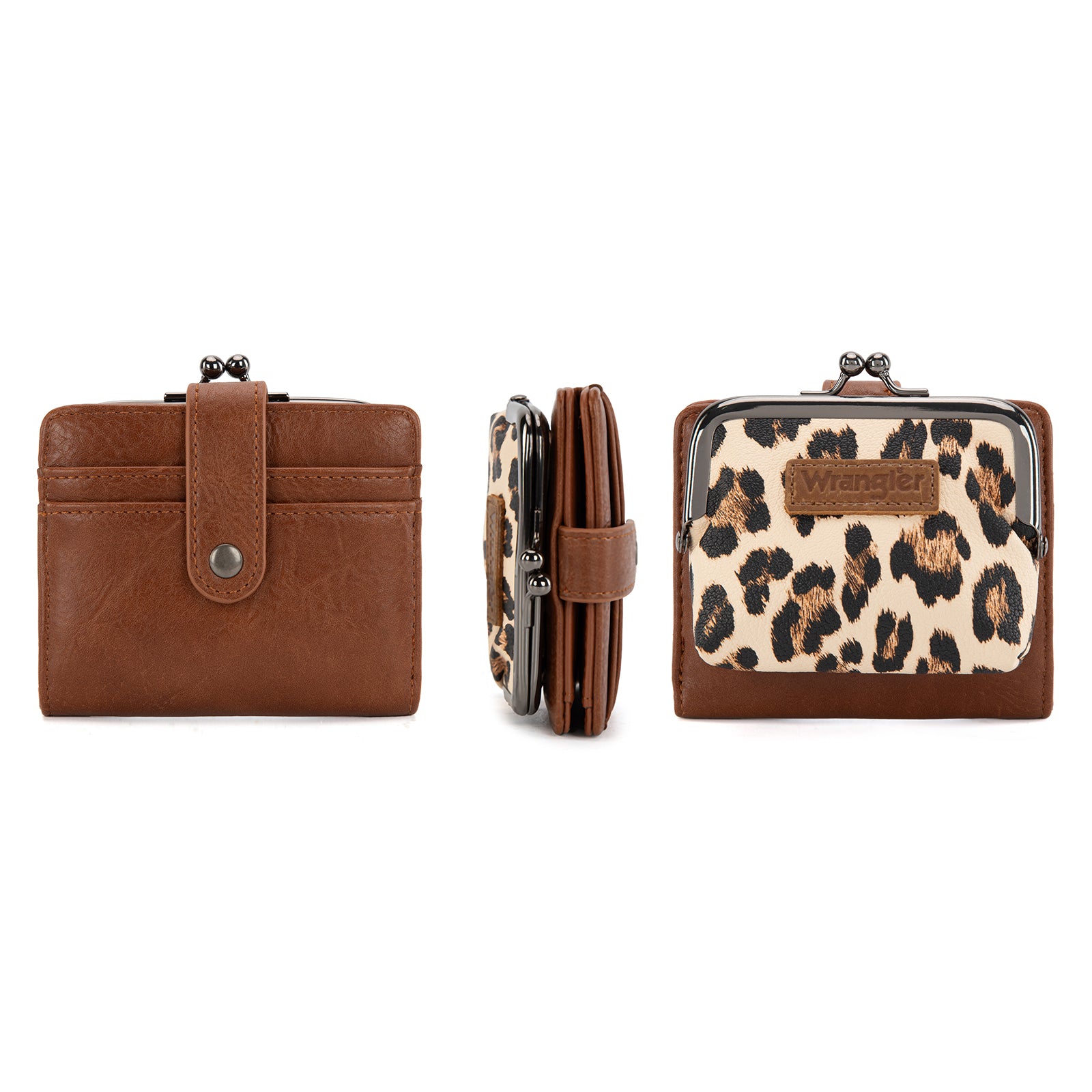 WG366-W116LP Wrangler Western Leopard Print Small Bi-Fold with Kiss Clasp Coin Purse -Leopard