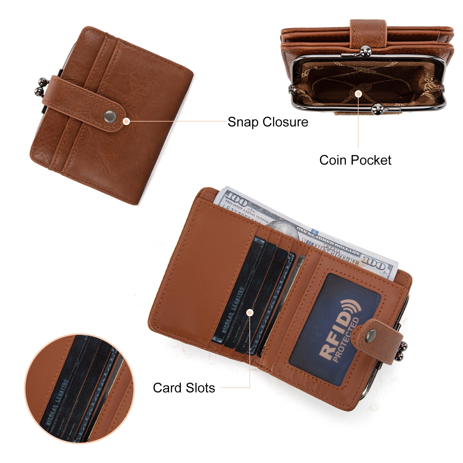 - This coin purse features 8 card slots and 1 bill slot and a kiss-lock coin pocket for organized.