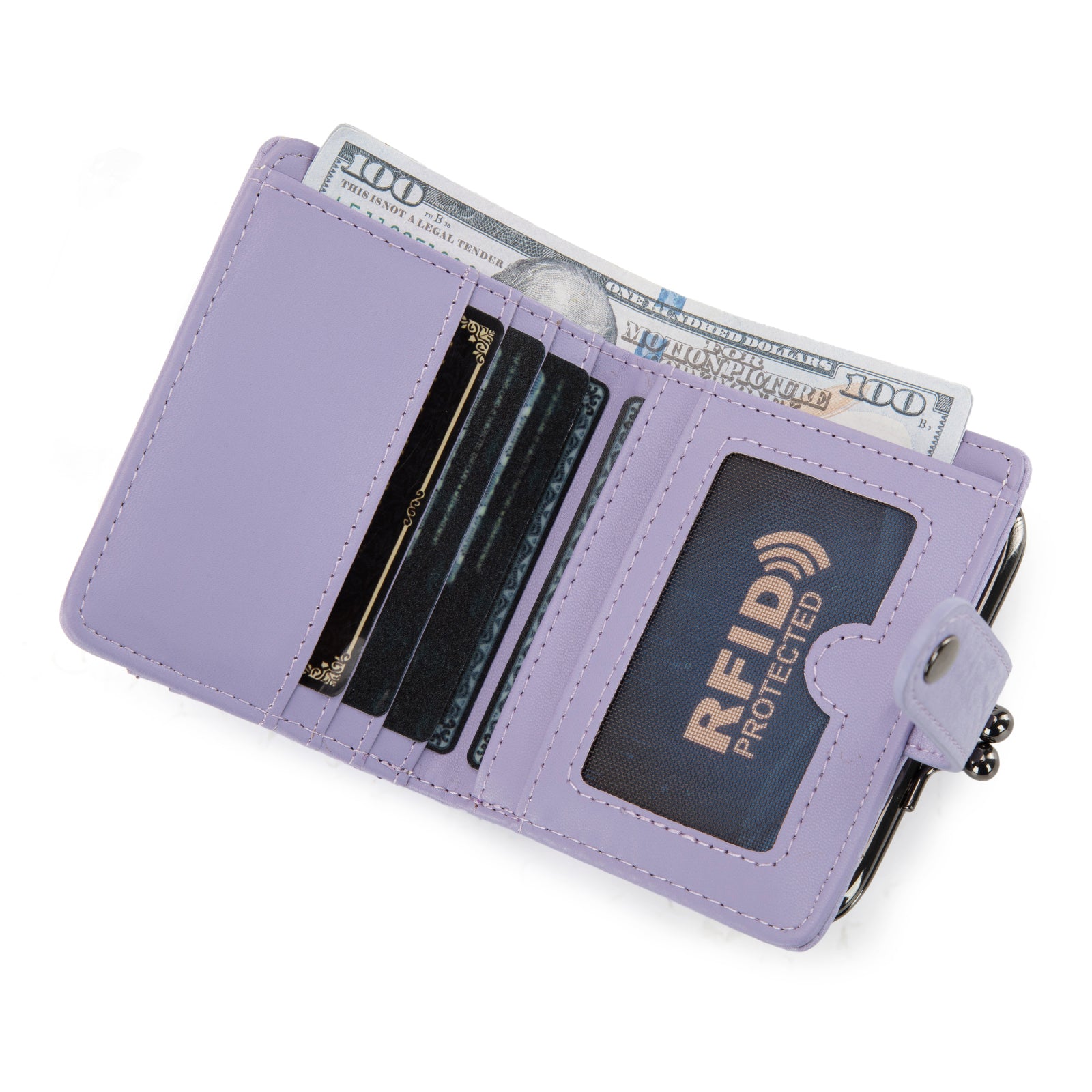 - This coin purse features 8 card slots and 1 bill slot and a kiss-lock coin pocket for organized.