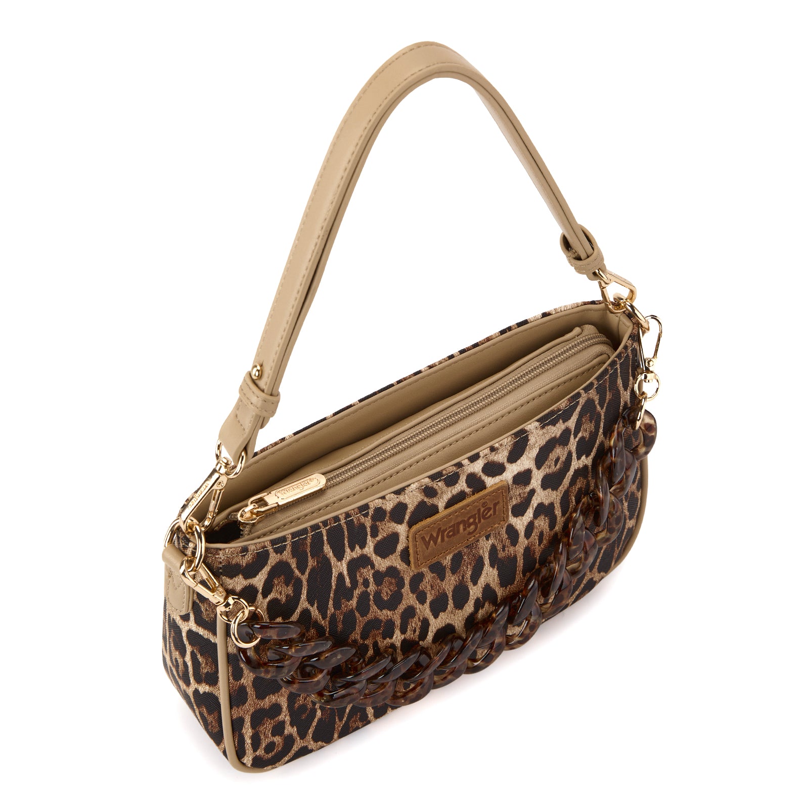 WG474-8633 Wrangler Western Leopard Print Shoulder Bag with Chain Detail -Leopard