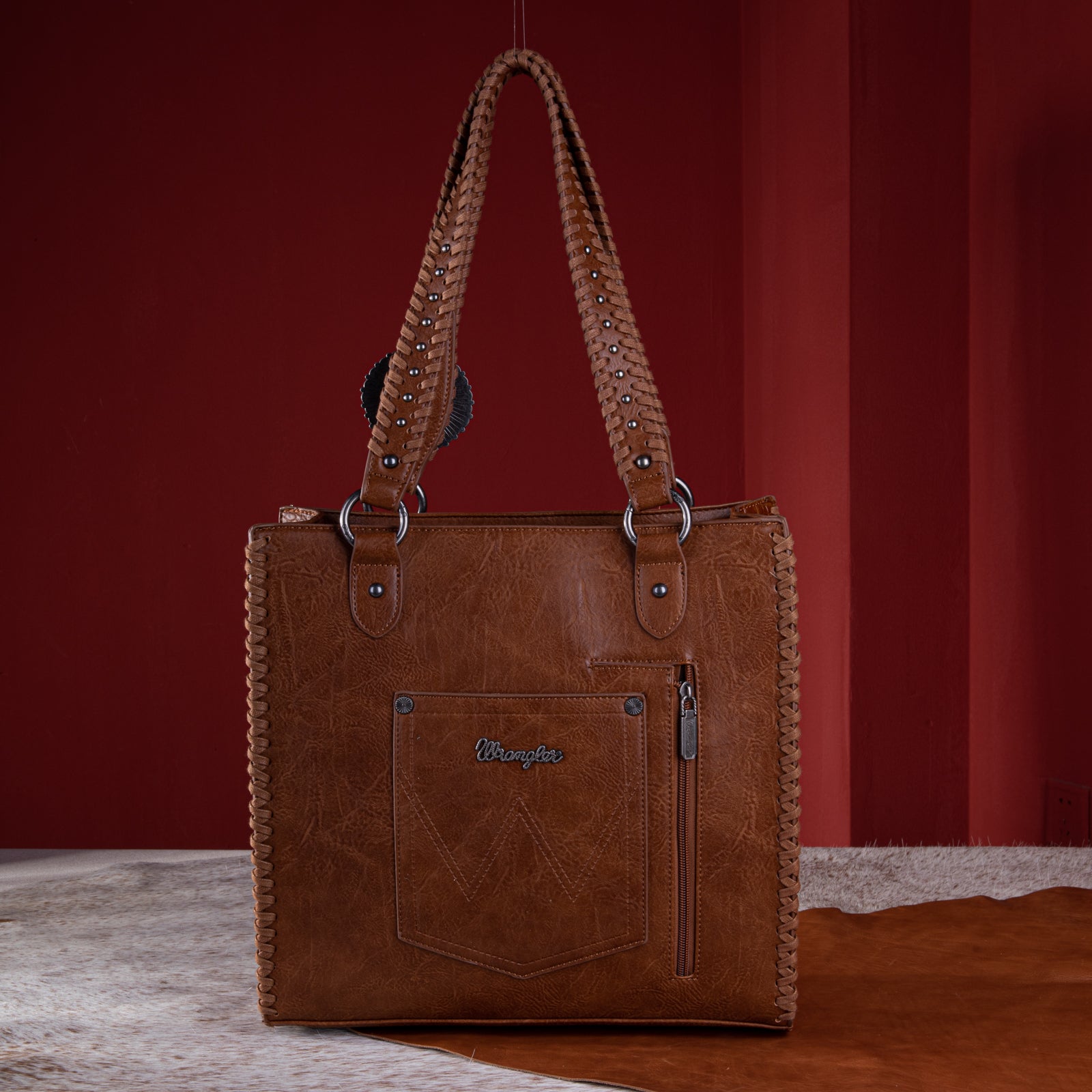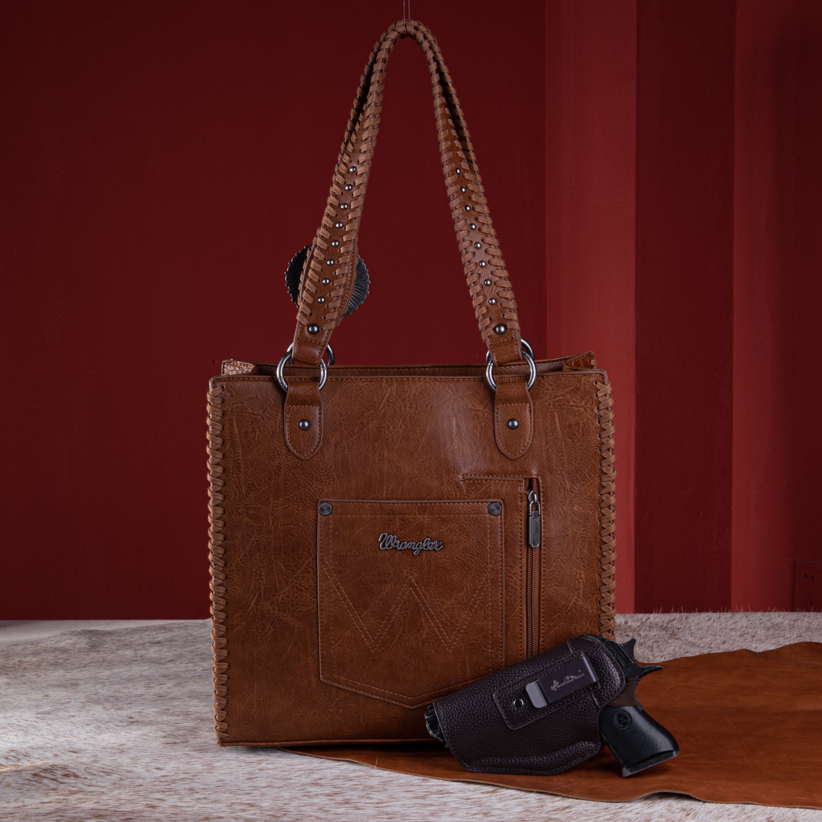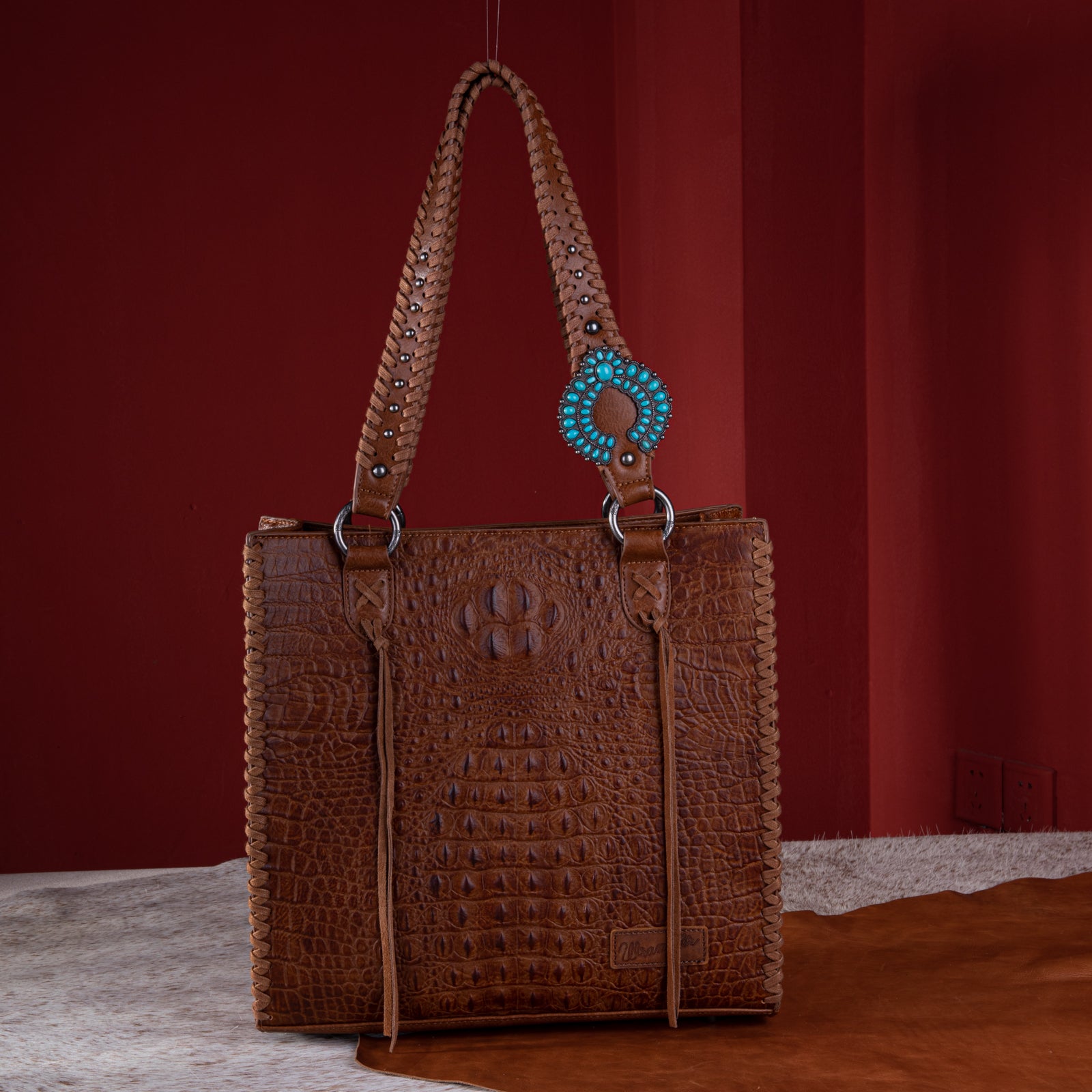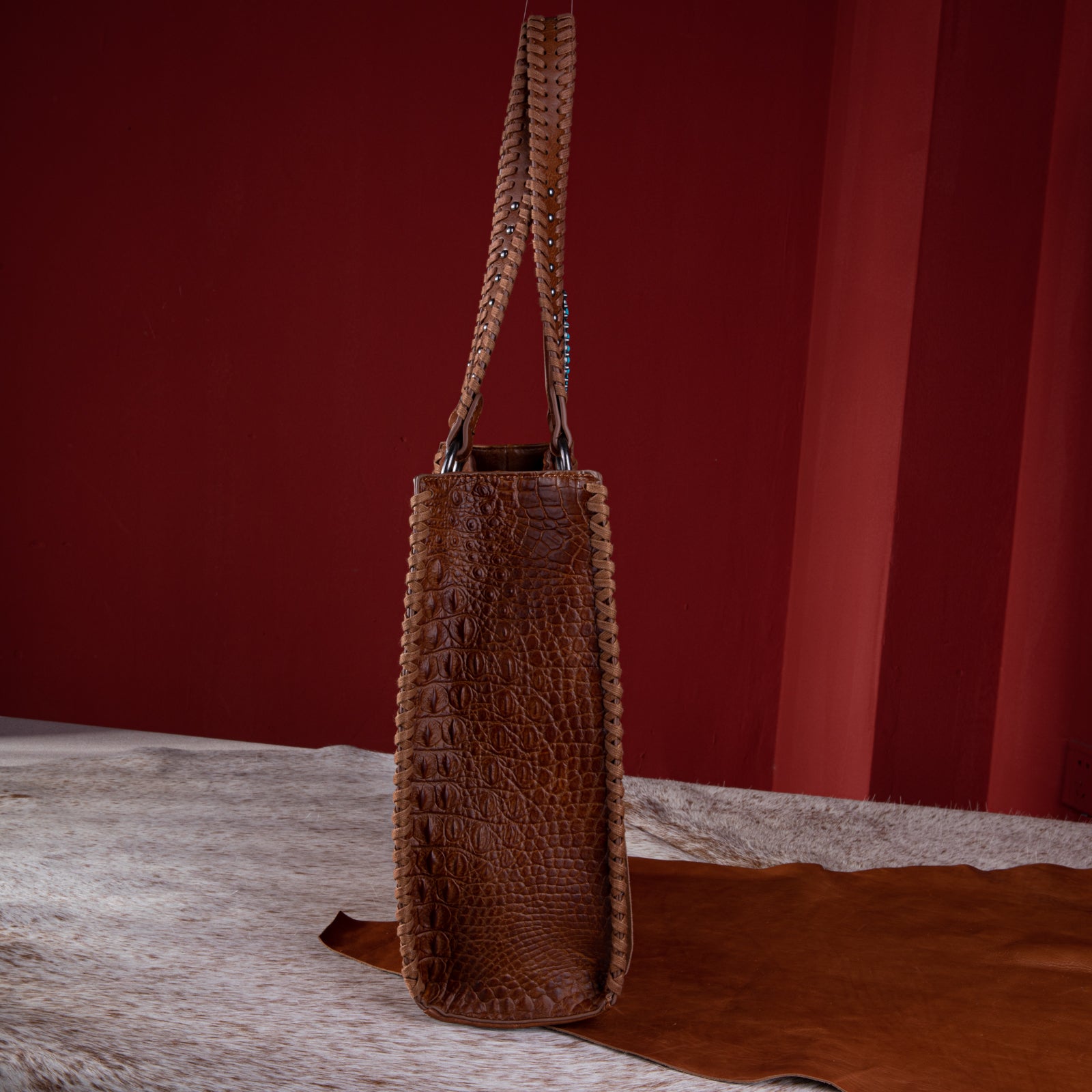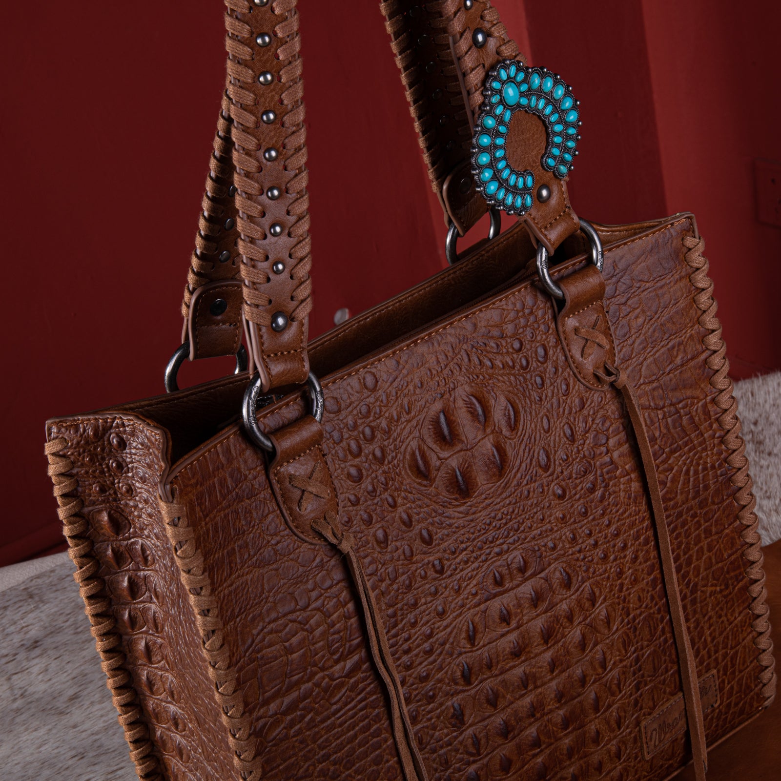 WG62G-8317 Wrangler Crocodile Embossed Whipstitch Concealed Carry Tote -Brown