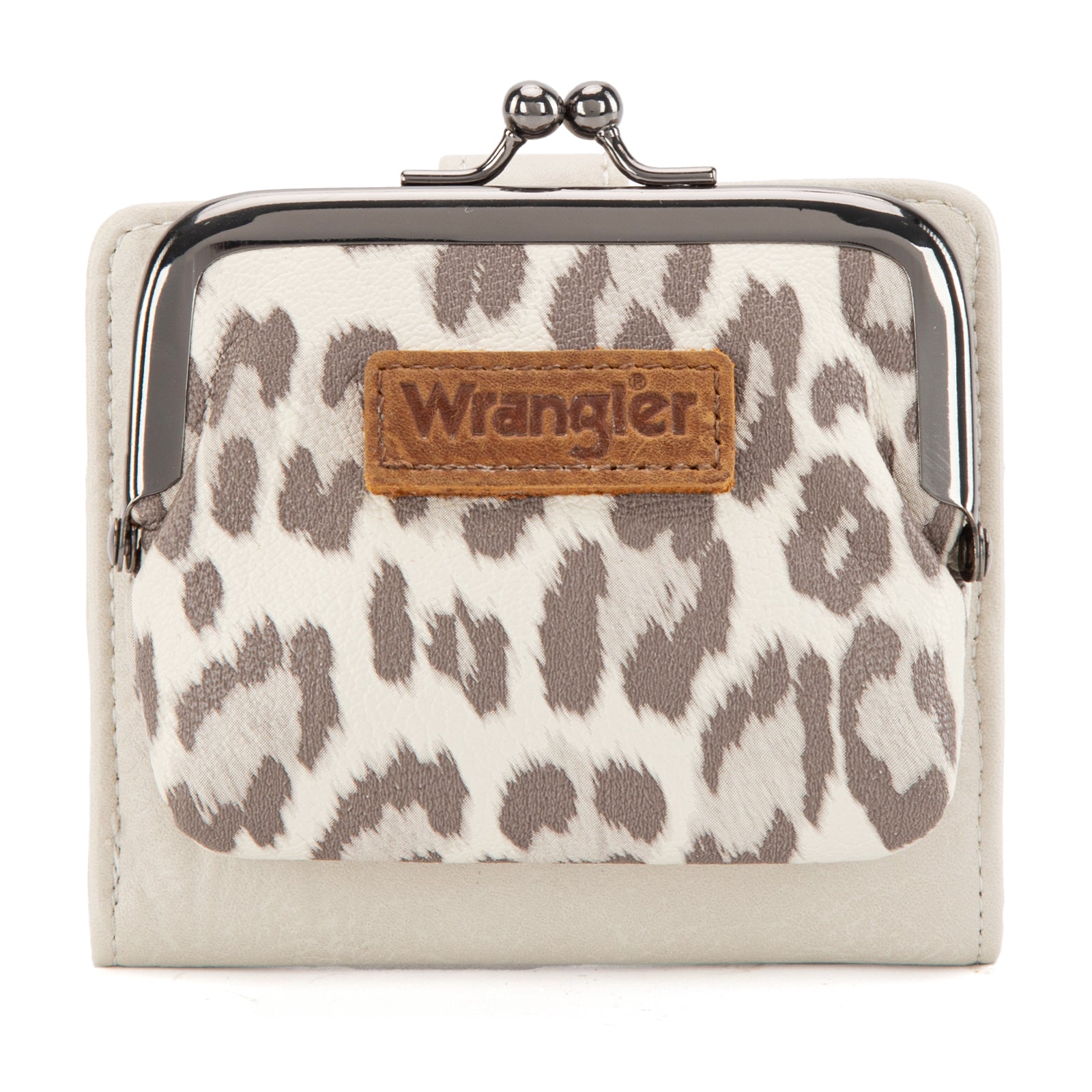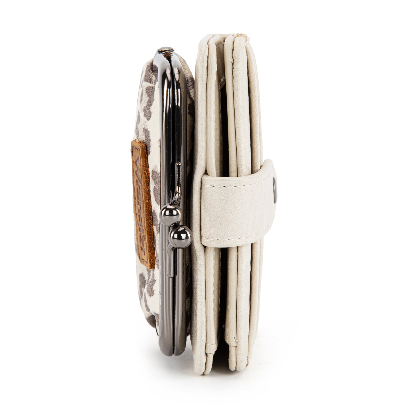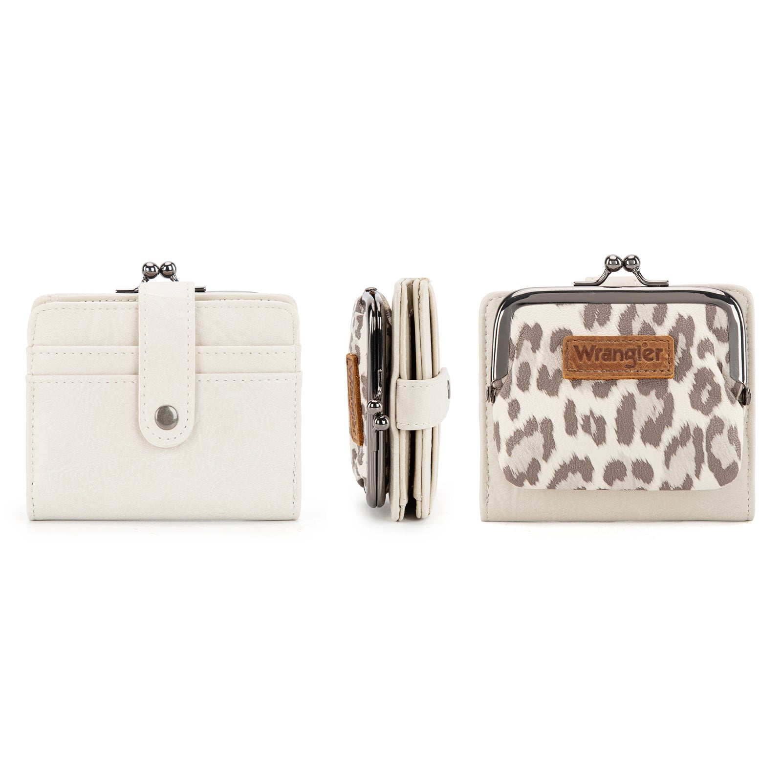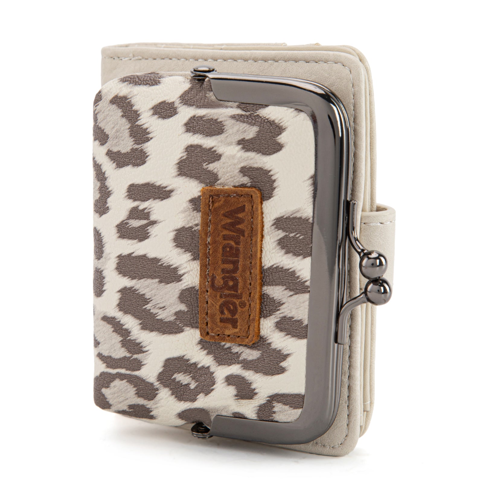 WWG366-W116BG Wrangler Western Leopard Print Small Bi-Fold with Kiss Clasp Coin Purse -Beige