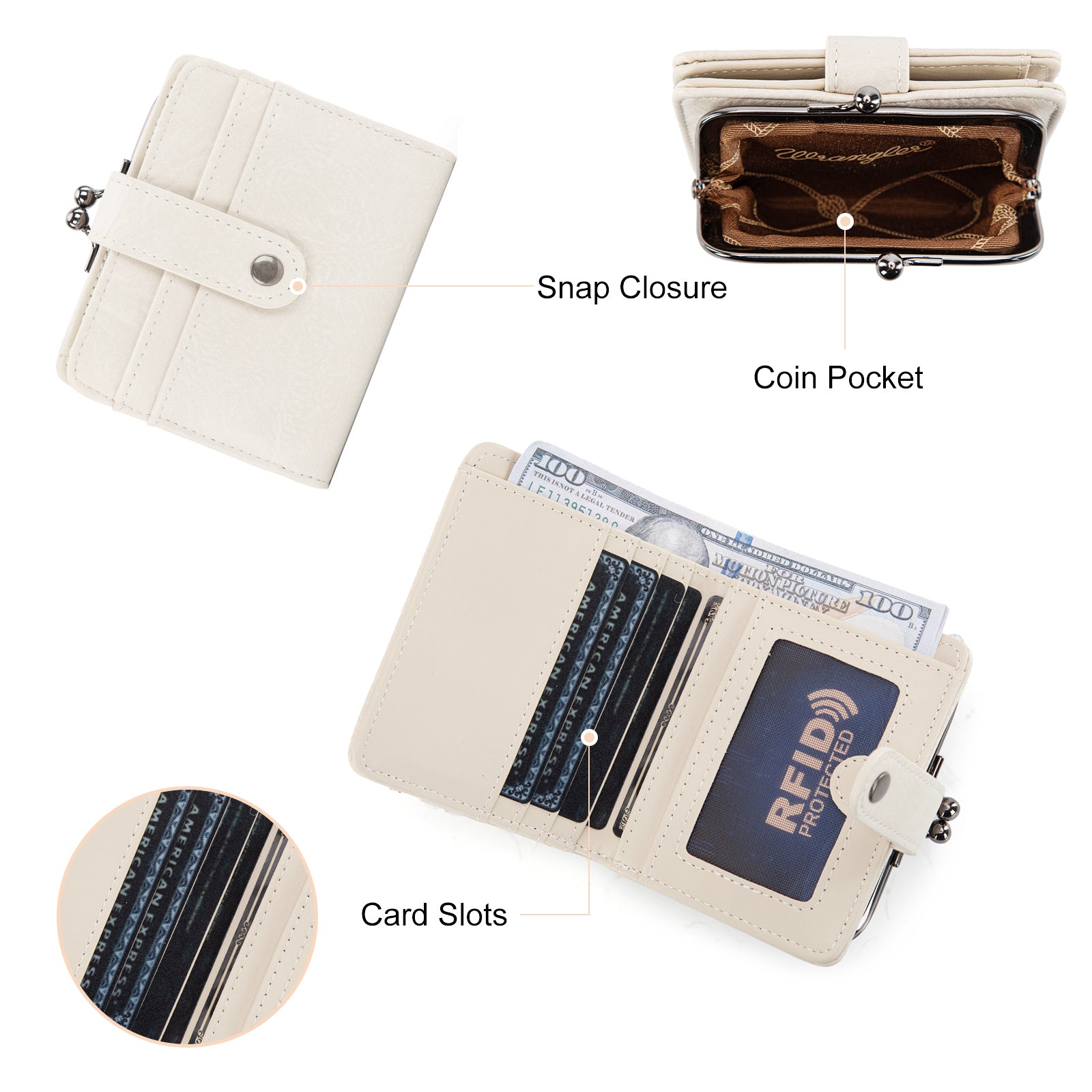 - This coin purse features 8 card slots and 1 bill slot and a kiss-lock coin pocket for organized.