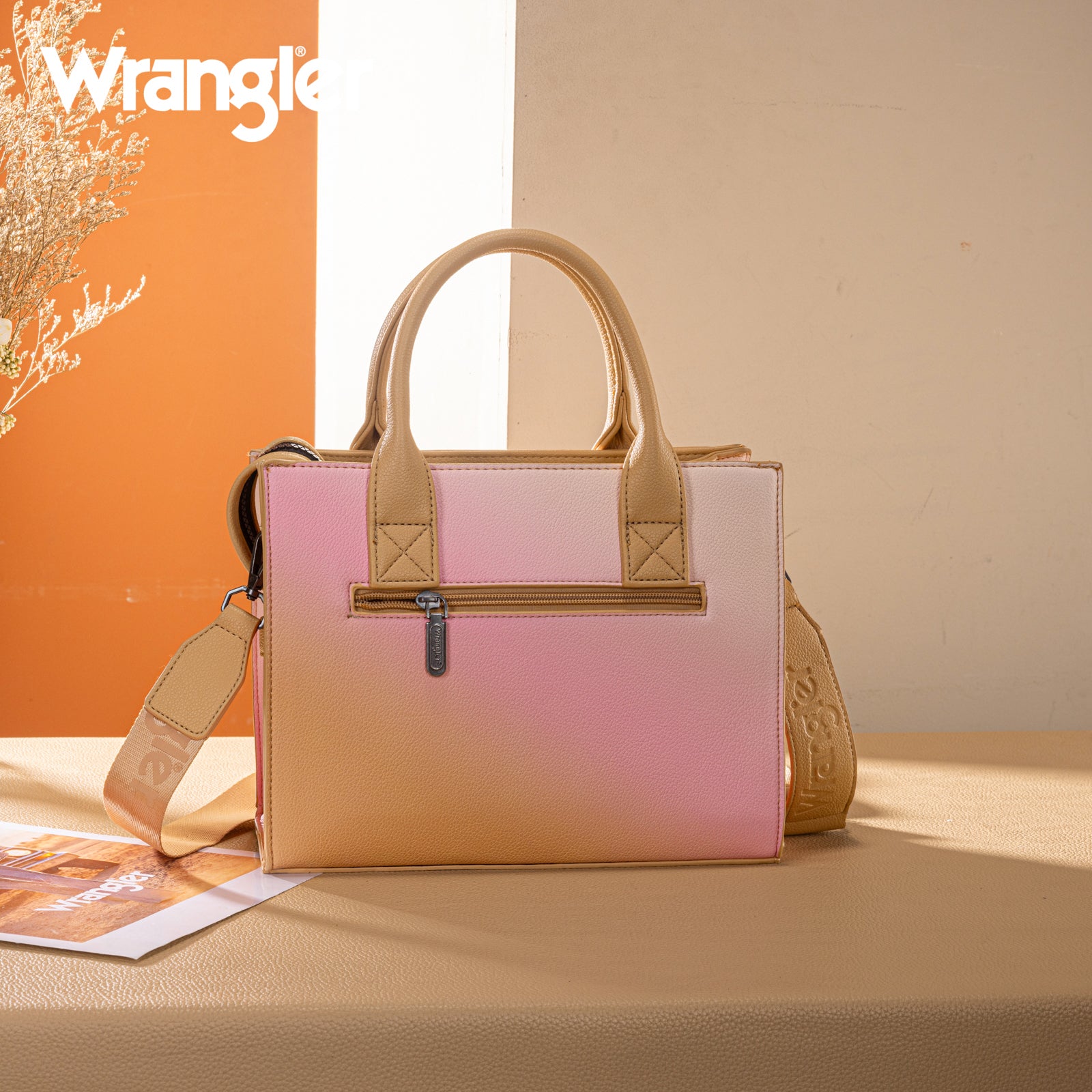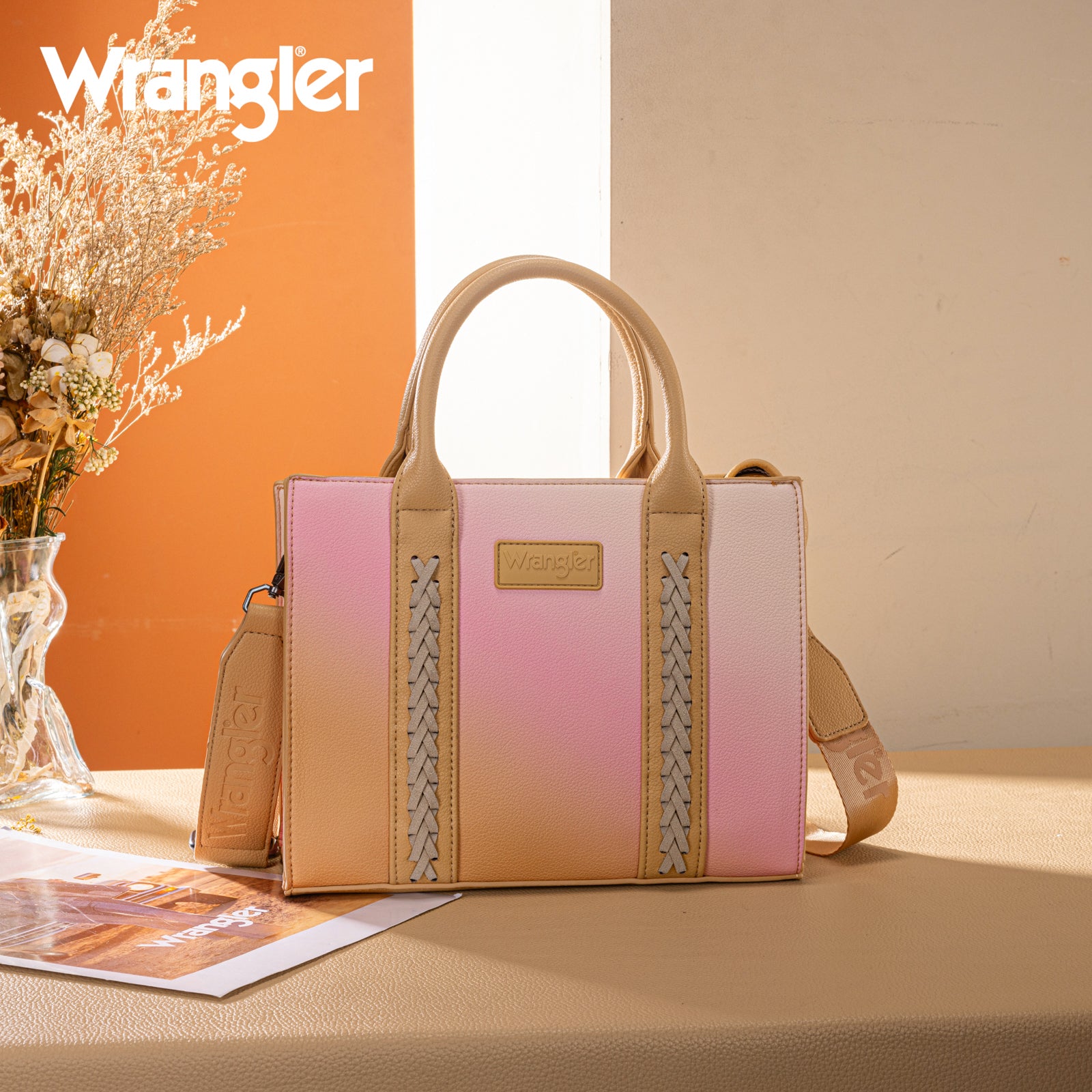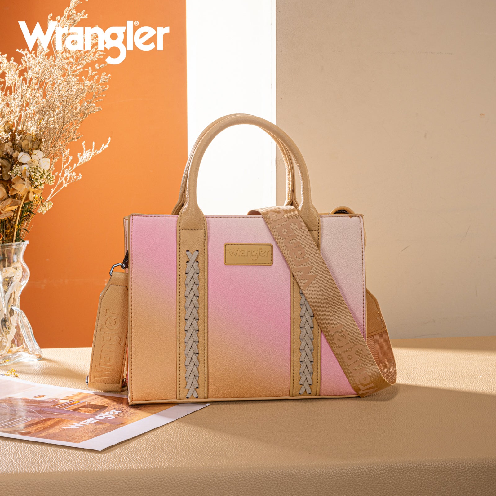 SKU:WG308-8120STNThis structured satchel features a soft ombre finish with braided accents and the Wrangler logo for a bold yet feminine look.