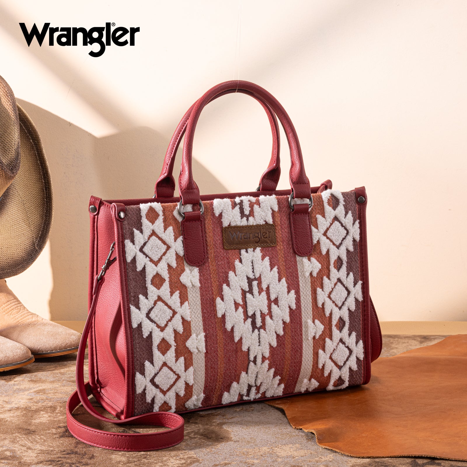 WG313-8119 Wrangler Sherpa Aztec Canvas Tote/Crossbody - Burgundy