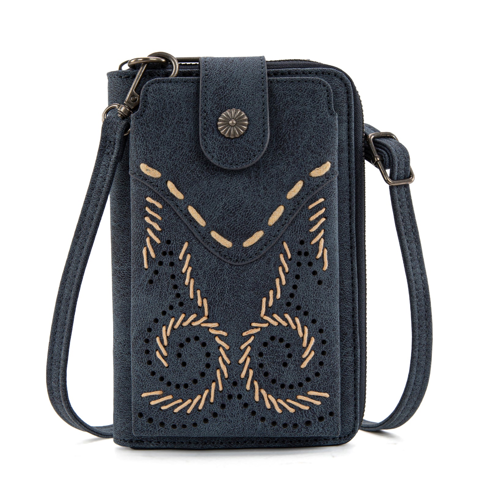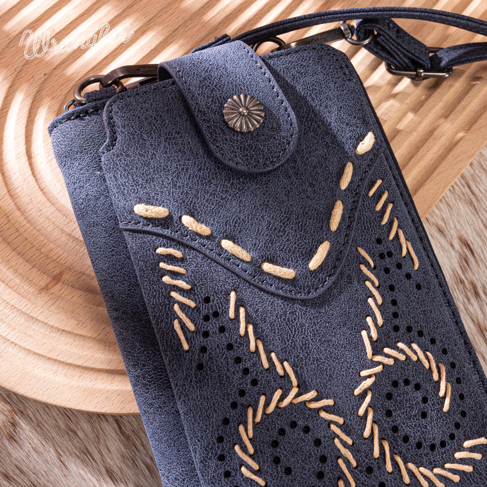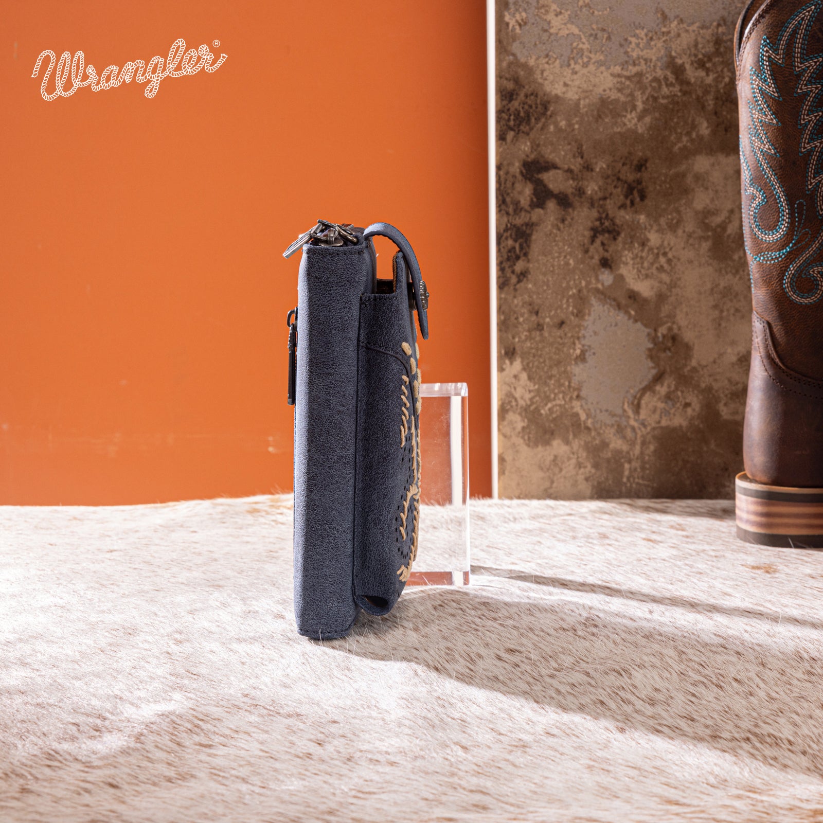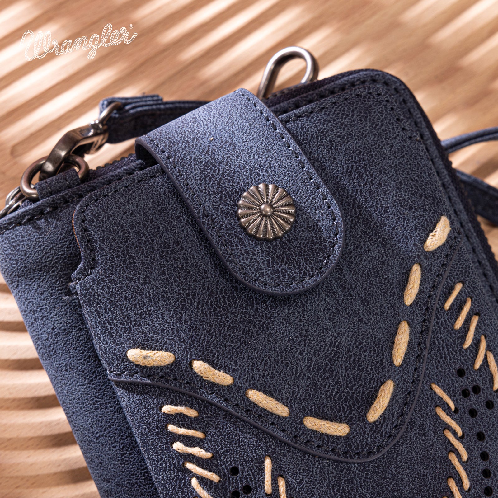 WG337-183 Wrangler Western Stitch RFID Phone Crossbody Wallet/Crossbody -Navy