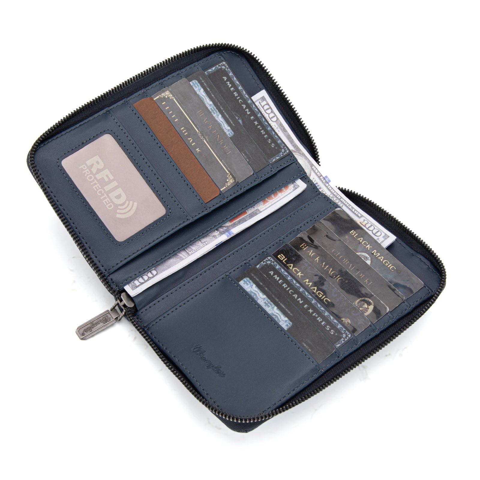- Inside of wallet have 11 card slots and 1 ID window
