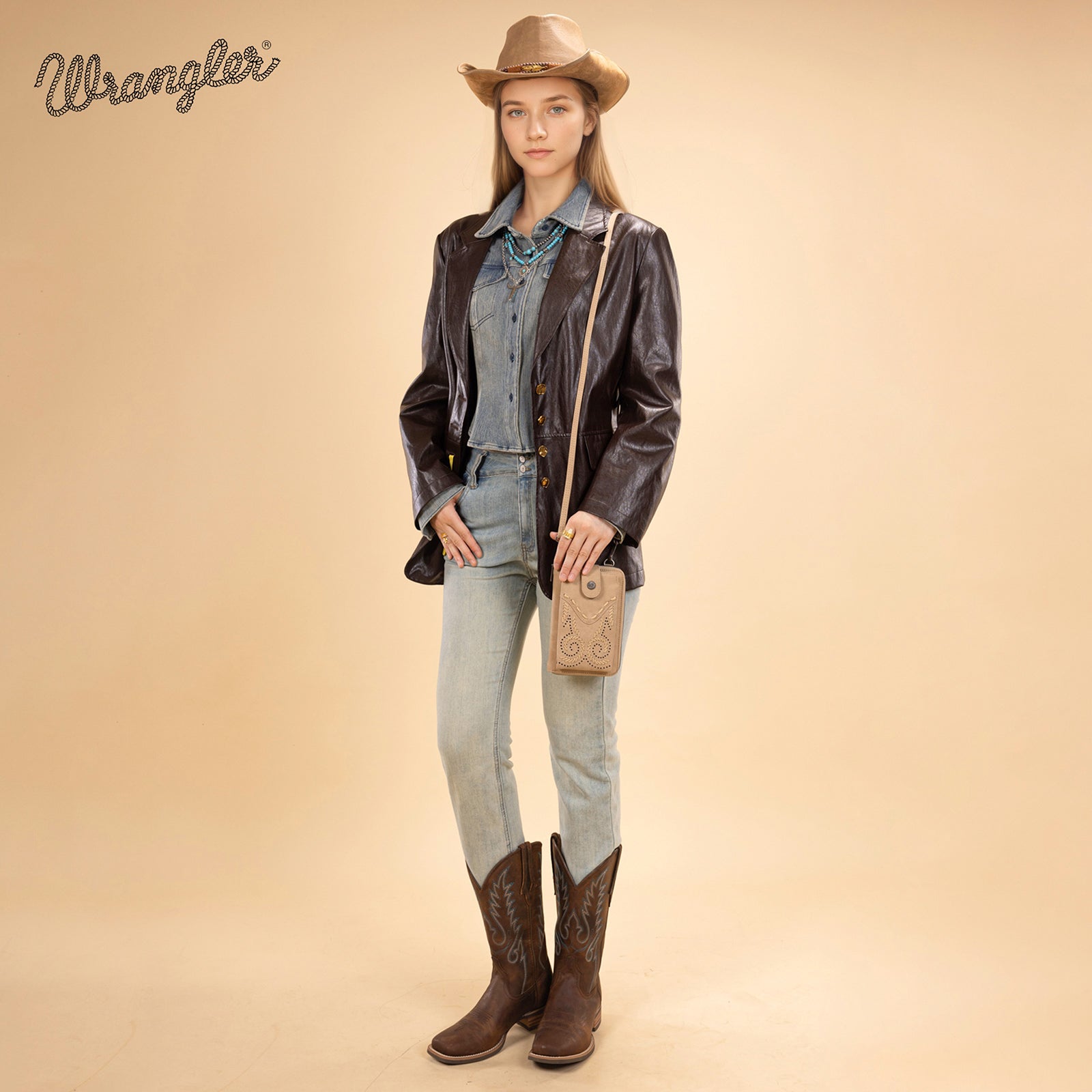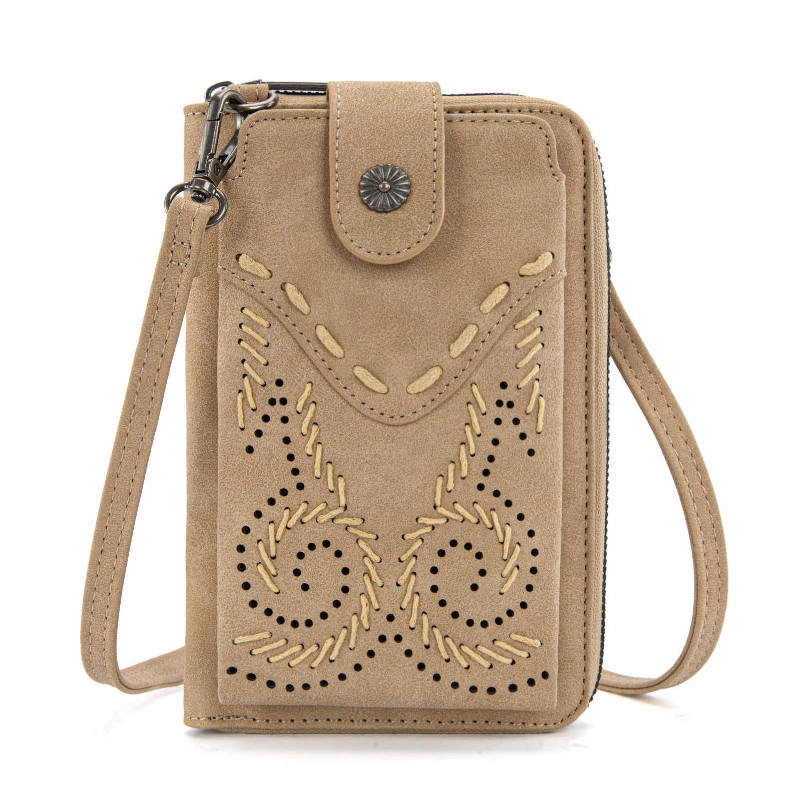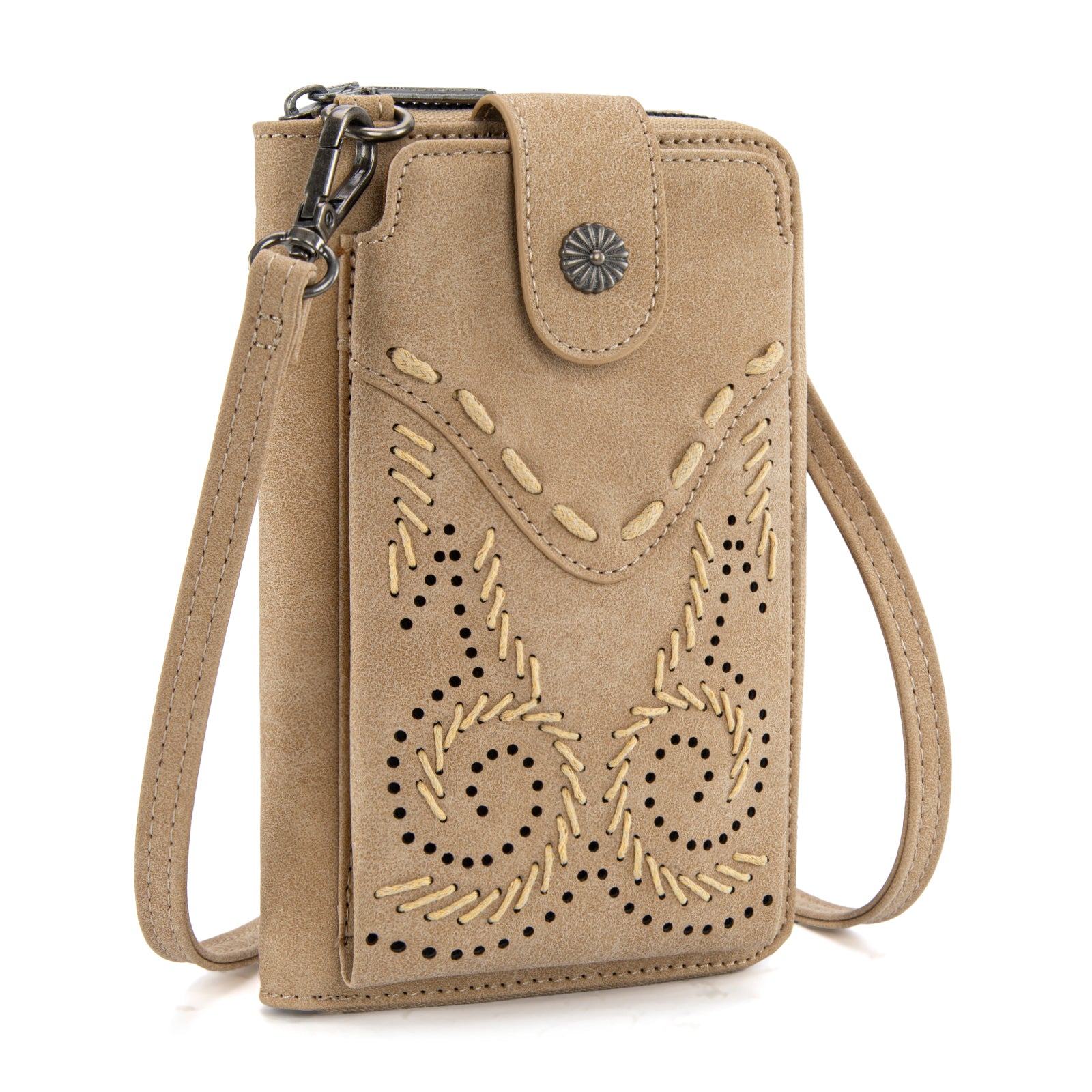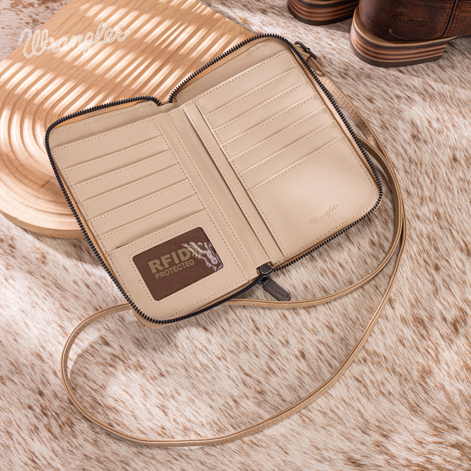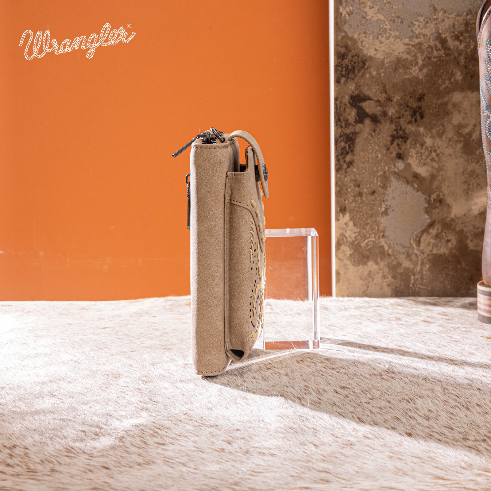 WG337-183 Wrangler Western Stitch RFID Phone Crossbody Wallet/Crossbody - Tan