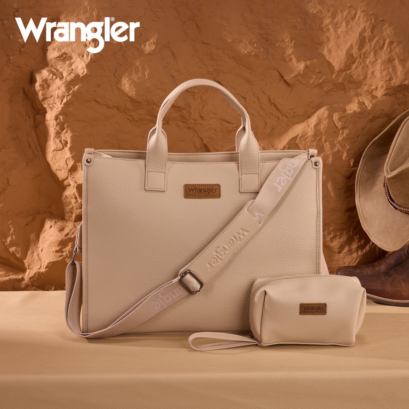 WG390-8110 Wrangler Structured Work Tote/Large Carry-All Tote/Crossbody with Pouch - Tan