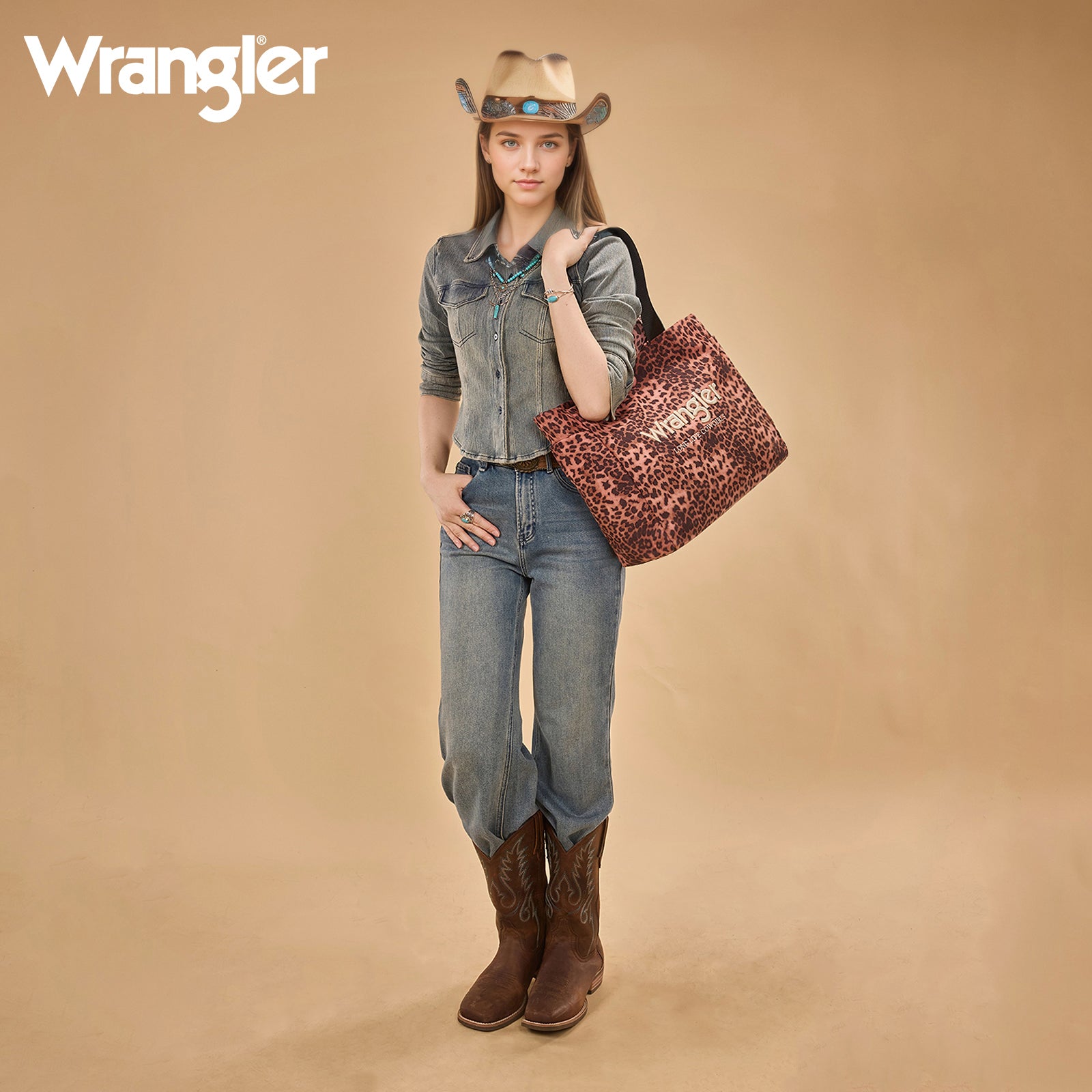 WG433-8317PK Wrangler Leopard Print Large Tote/Crossbody -Pink