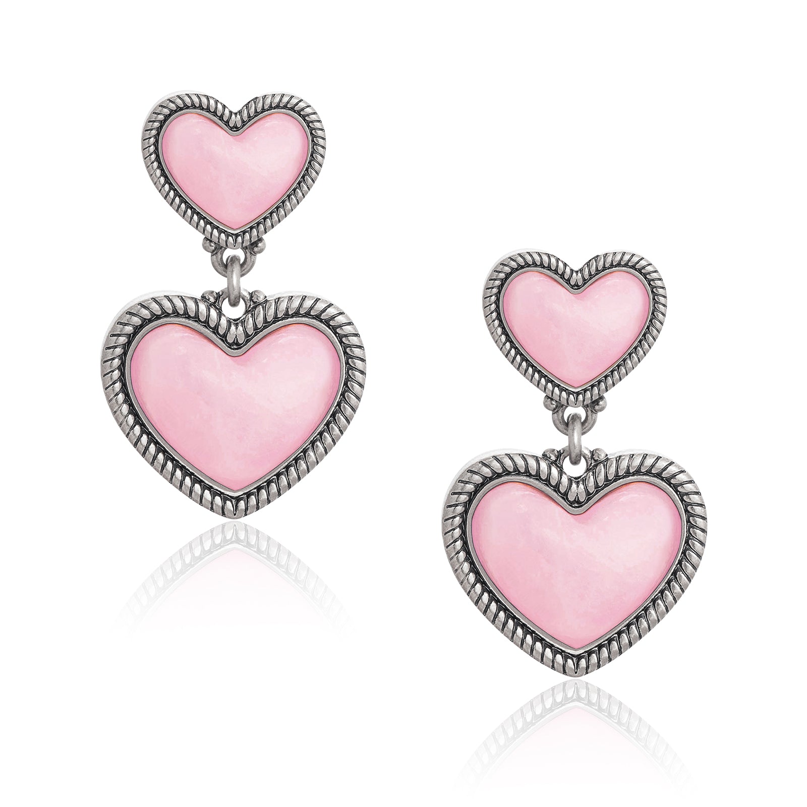 WGE-HT-1134S Wrangler Natural Stone Heart Shape Dangling Earrings -Pink