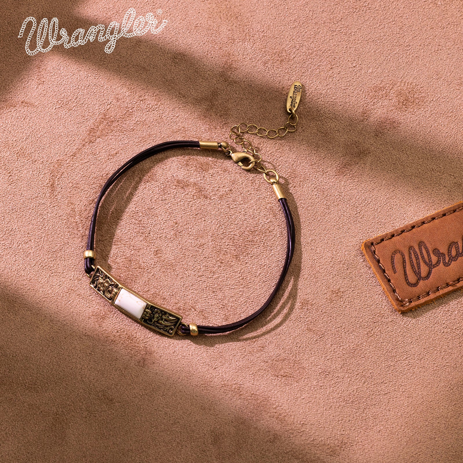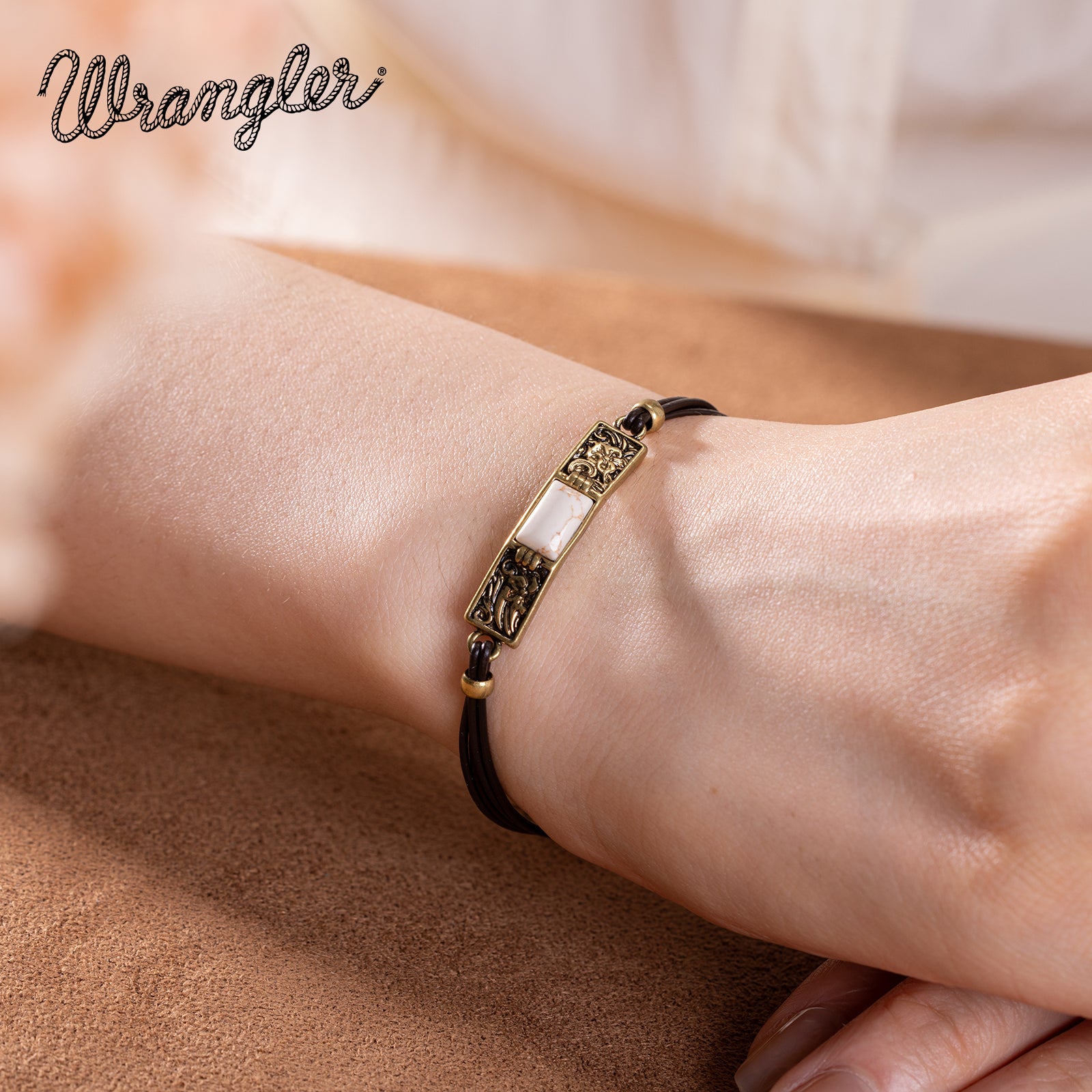 WGW-1119G-BG Wrangler Gold Western Natural Stone Engraved Bracelet -Beige