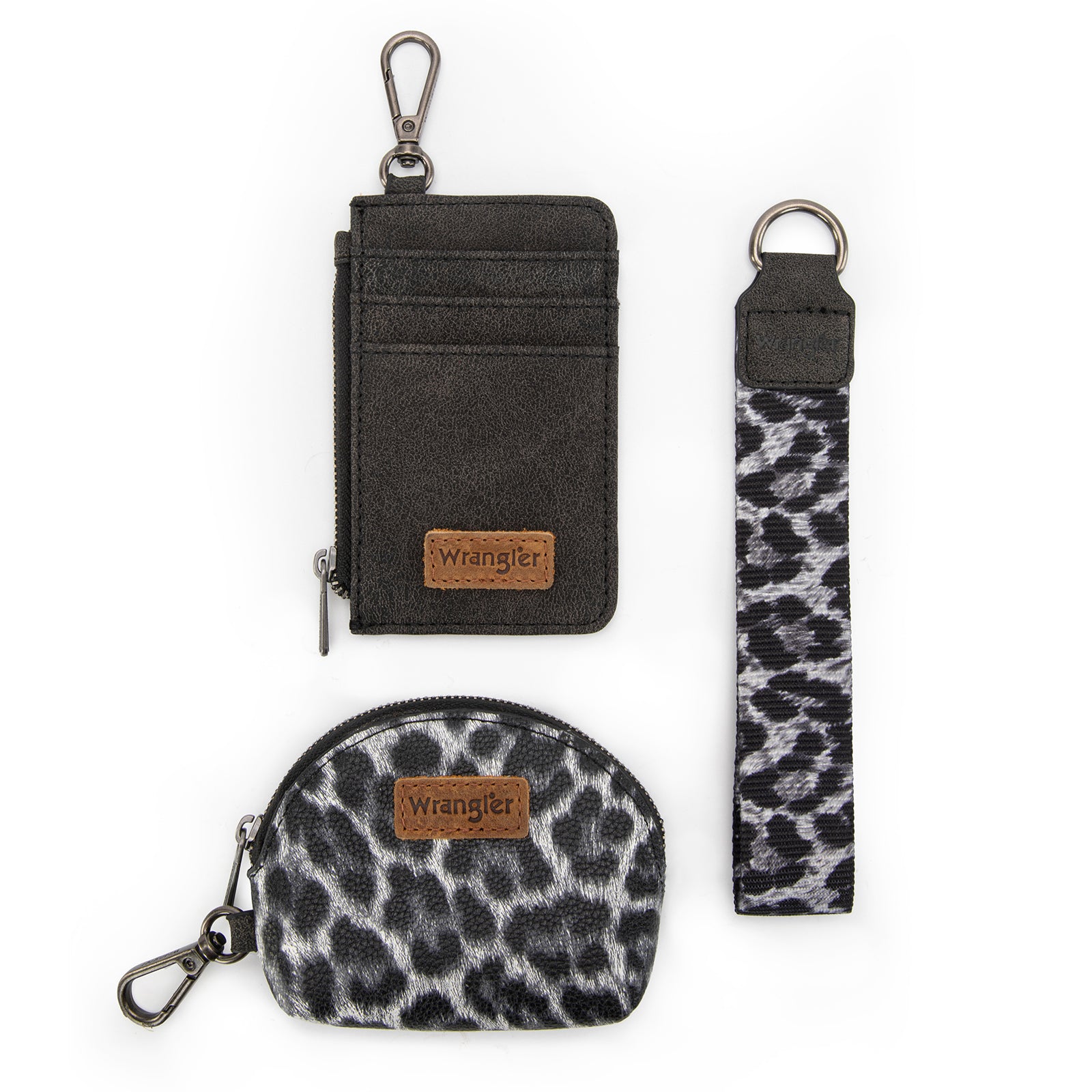 WG296-W0051 Wrangler Leopard Print Dual Pouch Wristlet -Black