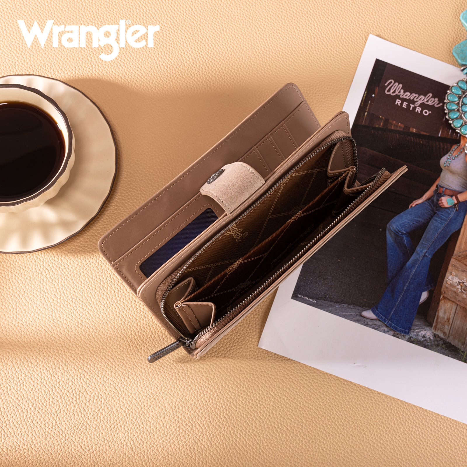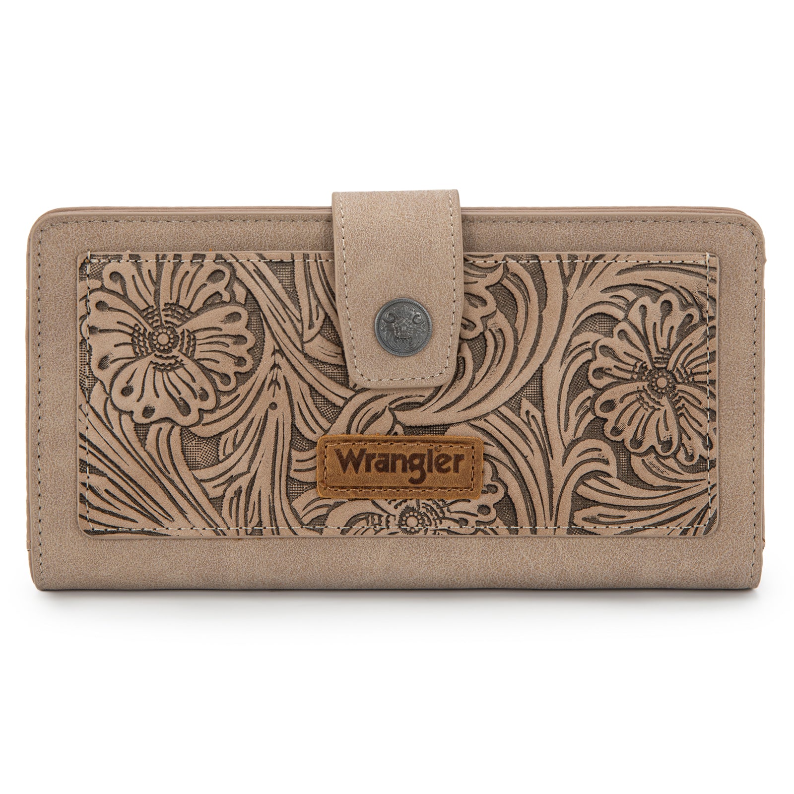 WG339-W080 Wrangler Western Floral Tooled RFID Wallet - Khaki