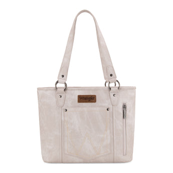 WG219-8317 Wrangler "W" Stitch Water Repellent Denim Pocket Zippered Tote Bag- Beige