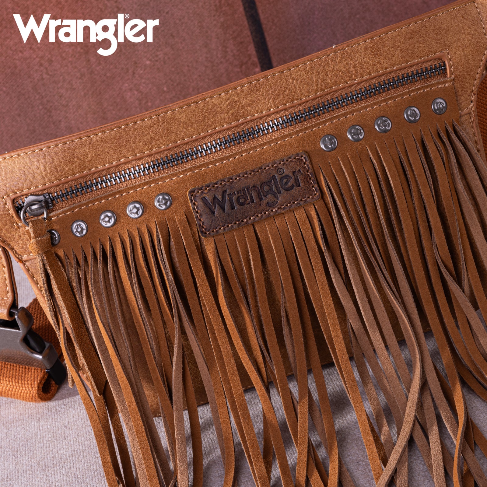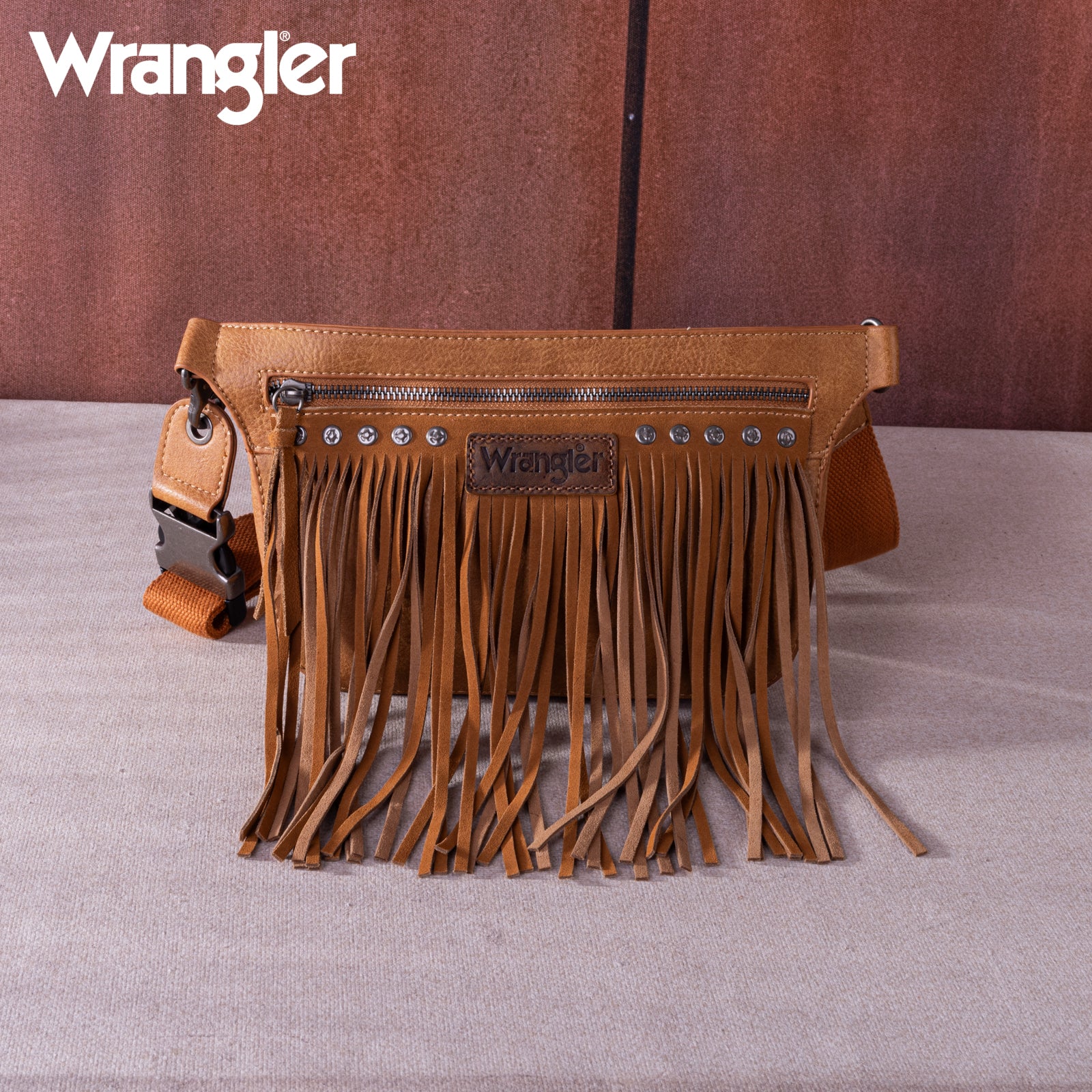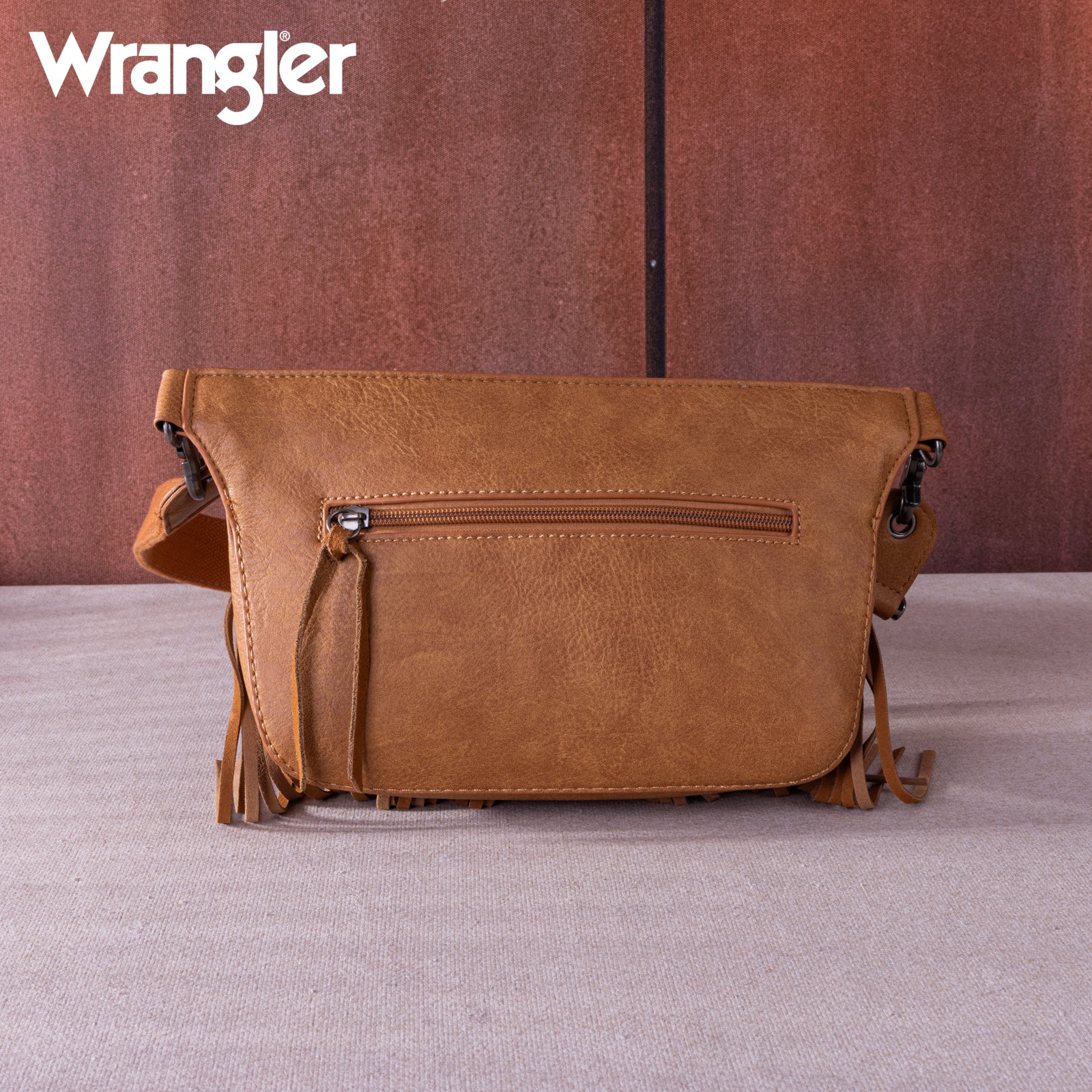 WG73-8194 Wrangler Fringe Fanny Pack Belt Bag Sling Bag - Brown