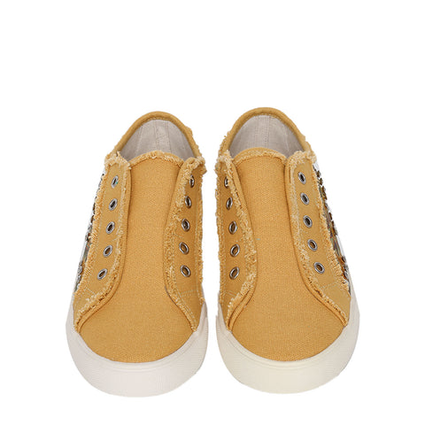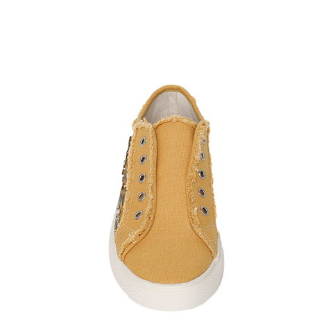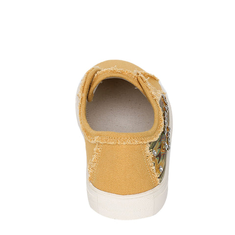 A bling canvas shoes, retro-inspired white sidewalls for classic style and generous underfoot cushioning for all day comfort. Geometric pattern print Light frayed detailing Studded design No laces Dual...