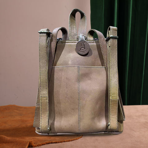 Made of 100% genuine leather, this mini backpack has: Hand tooled floral on the flap with magnetic button closure Genuine Oily Calf Leather A zippered pocket Top handle (3.5") Inside...
