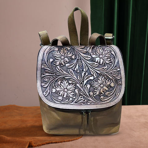 A&A-1041 Montana West Genuine Oily Calf Leather Hand Tooled Collection Backpack