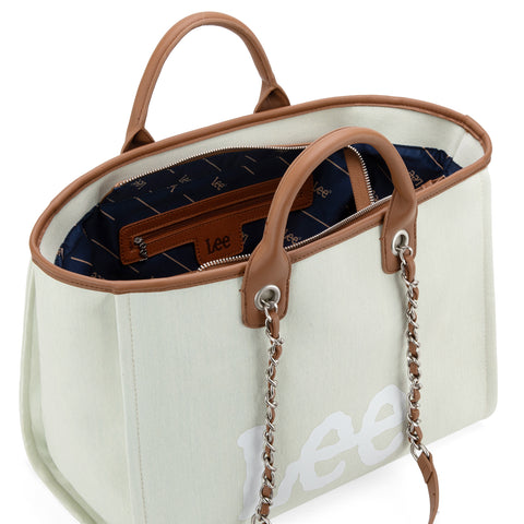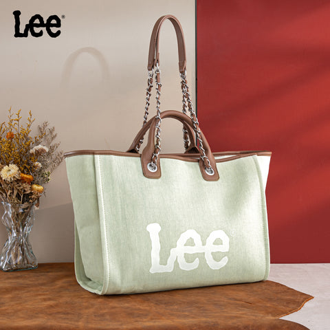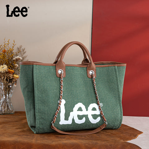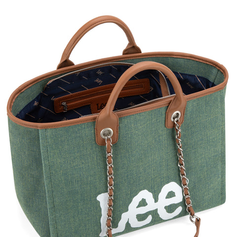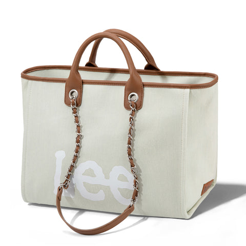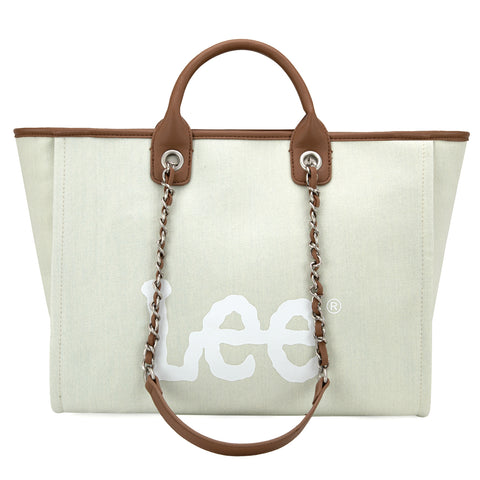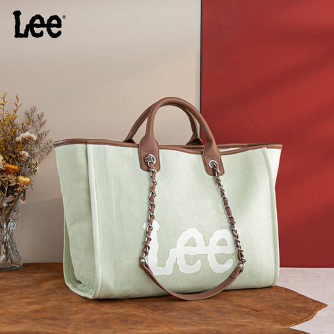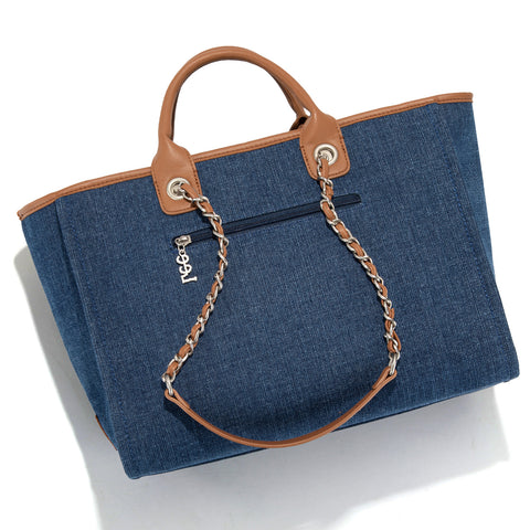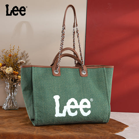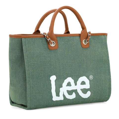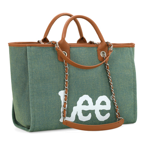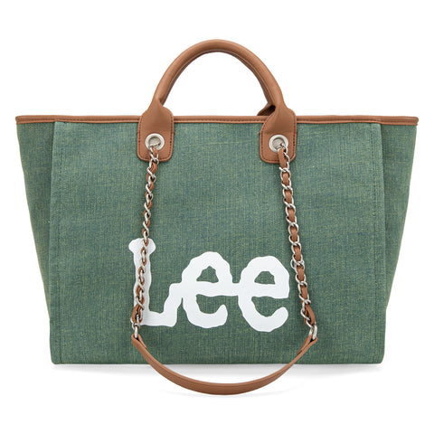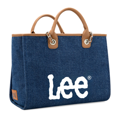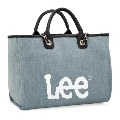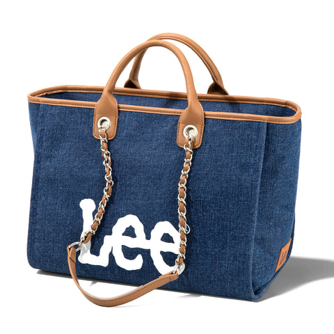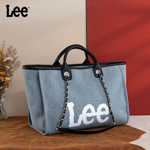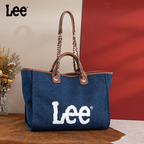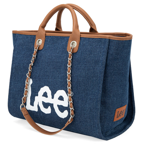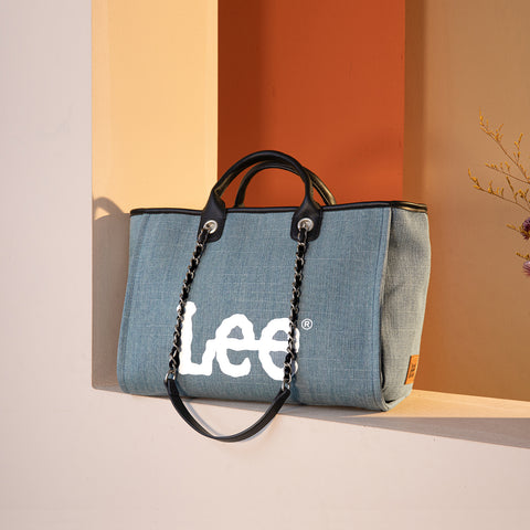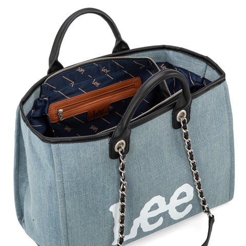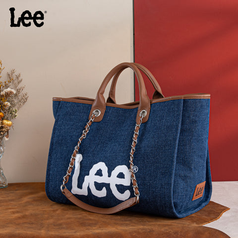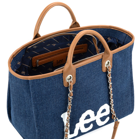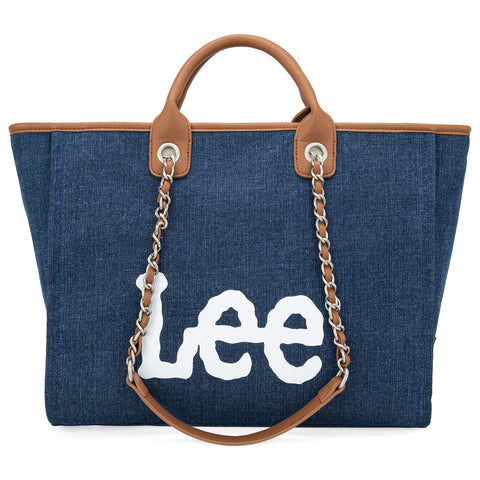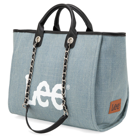 LEE45-345 LEE Canvas Denim Top Handle/Chain Strap Wide Tote