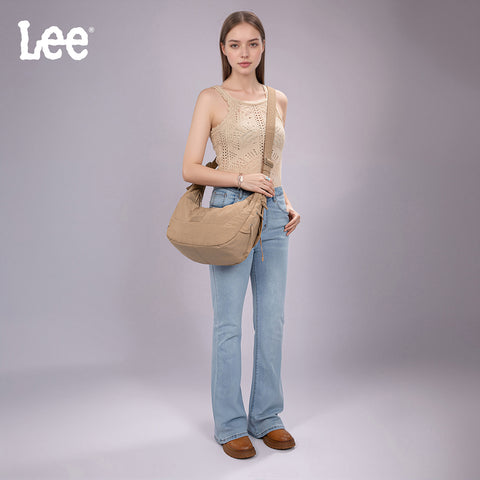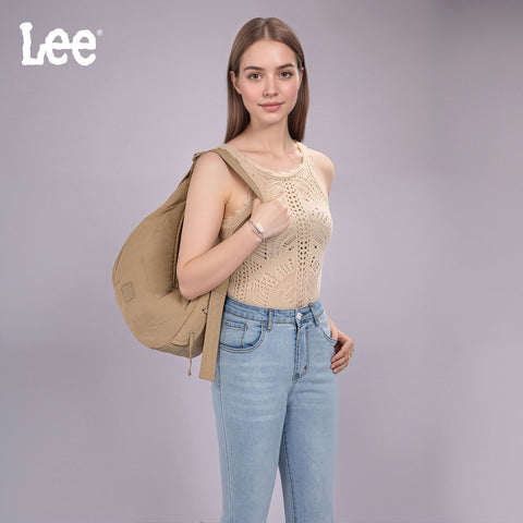 Made of water resistant polyester ,this hobo/crossbody bag has: LEE logo applique Lace-up on the sides Top zipper closure Inside of the bag includes a zippered pocket and an open...