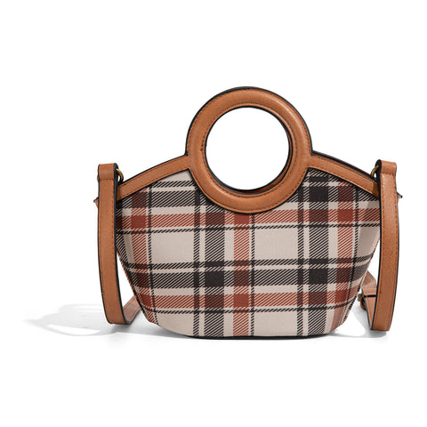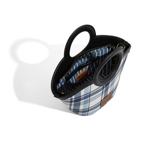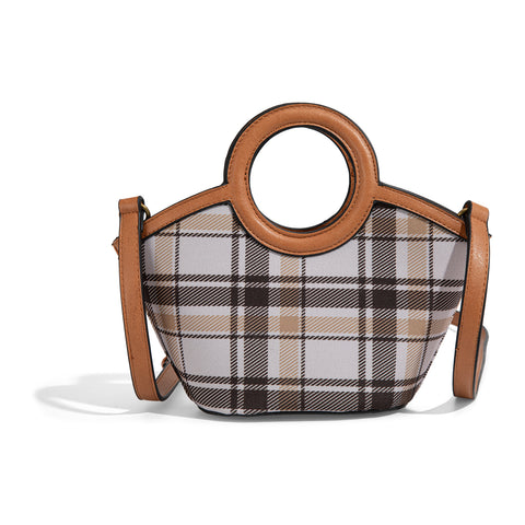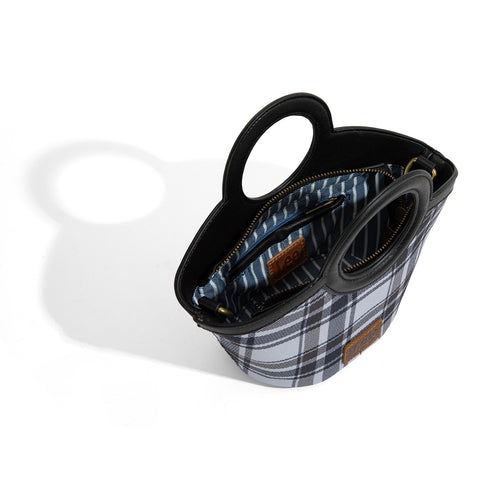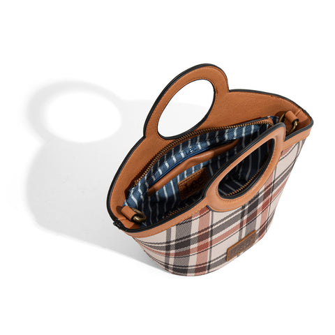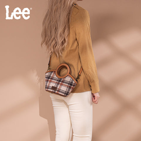 LEE54-003 LEE Plaid Canvas Top Handle Small Tote/Crossbody