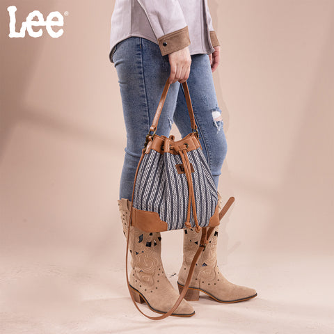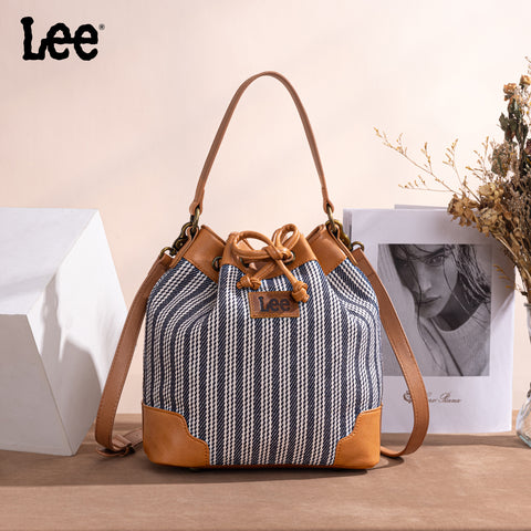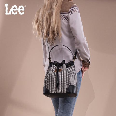 LEE55-006 LEE Stripe Collection Drawstring Bucket Crossbody Bag