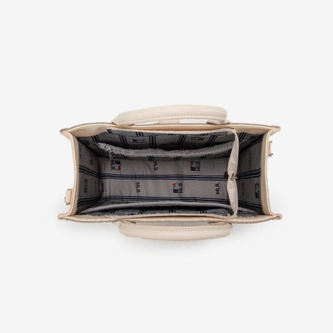 MLB OFFICIAL BASEBALL TOTE/CROSSBODY Made of PU Leather, this tote/crossbody has: Embossed Toronto Blue Jays logo on the front "BJ" logo stamped all over Whipstitch detail...