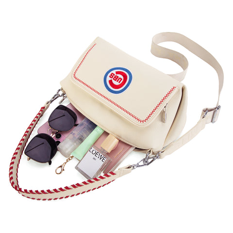 MLB OFFICIAL BASEBALL SHOULDER BAG/CROSSBODY Made of PU Leather, this shoulder bag/crossbody has: Embroidered Chicago Cubs logo on the front pocket Baseball stitch Inside on the front...