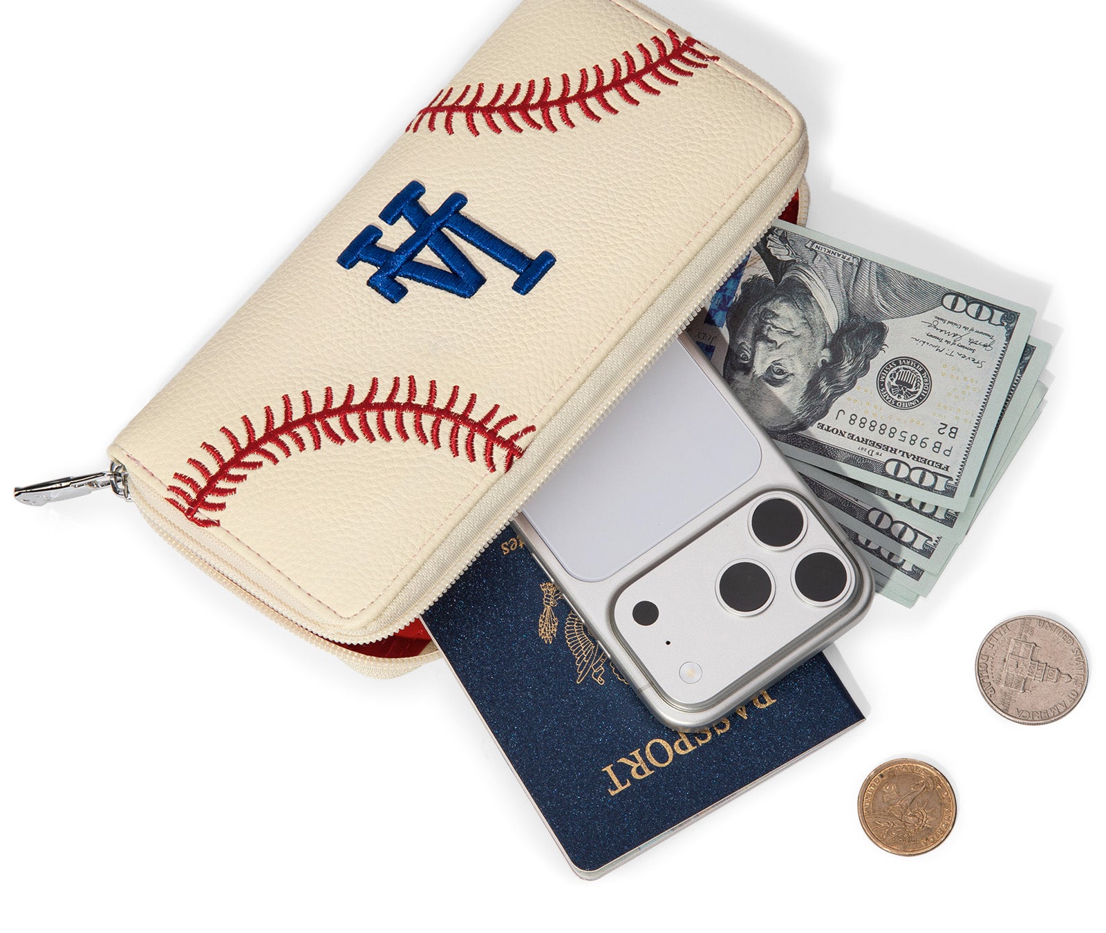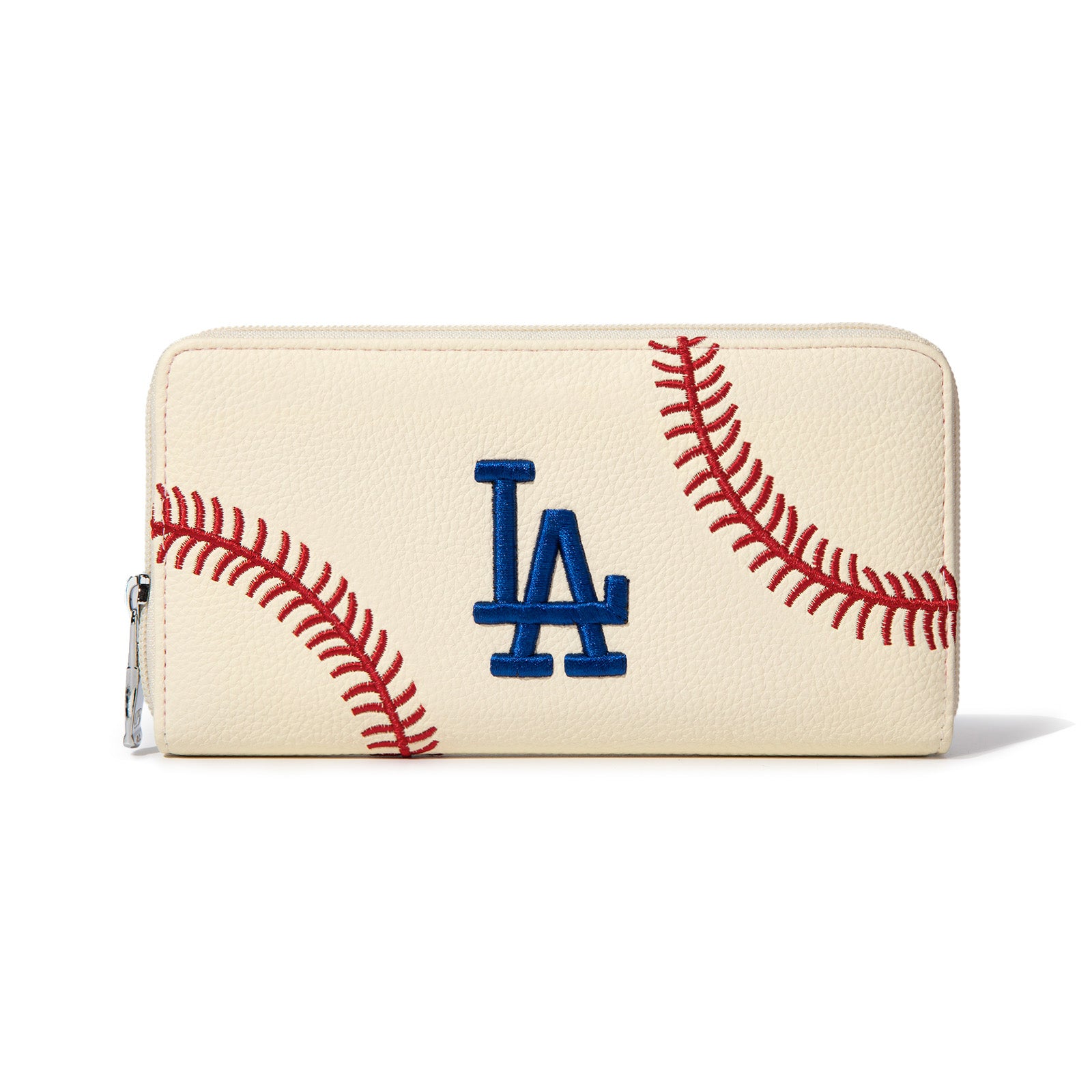 MLB-LA112 MLB Los Angeles Dodgers Zip Wallet Baseball Stitch Detail