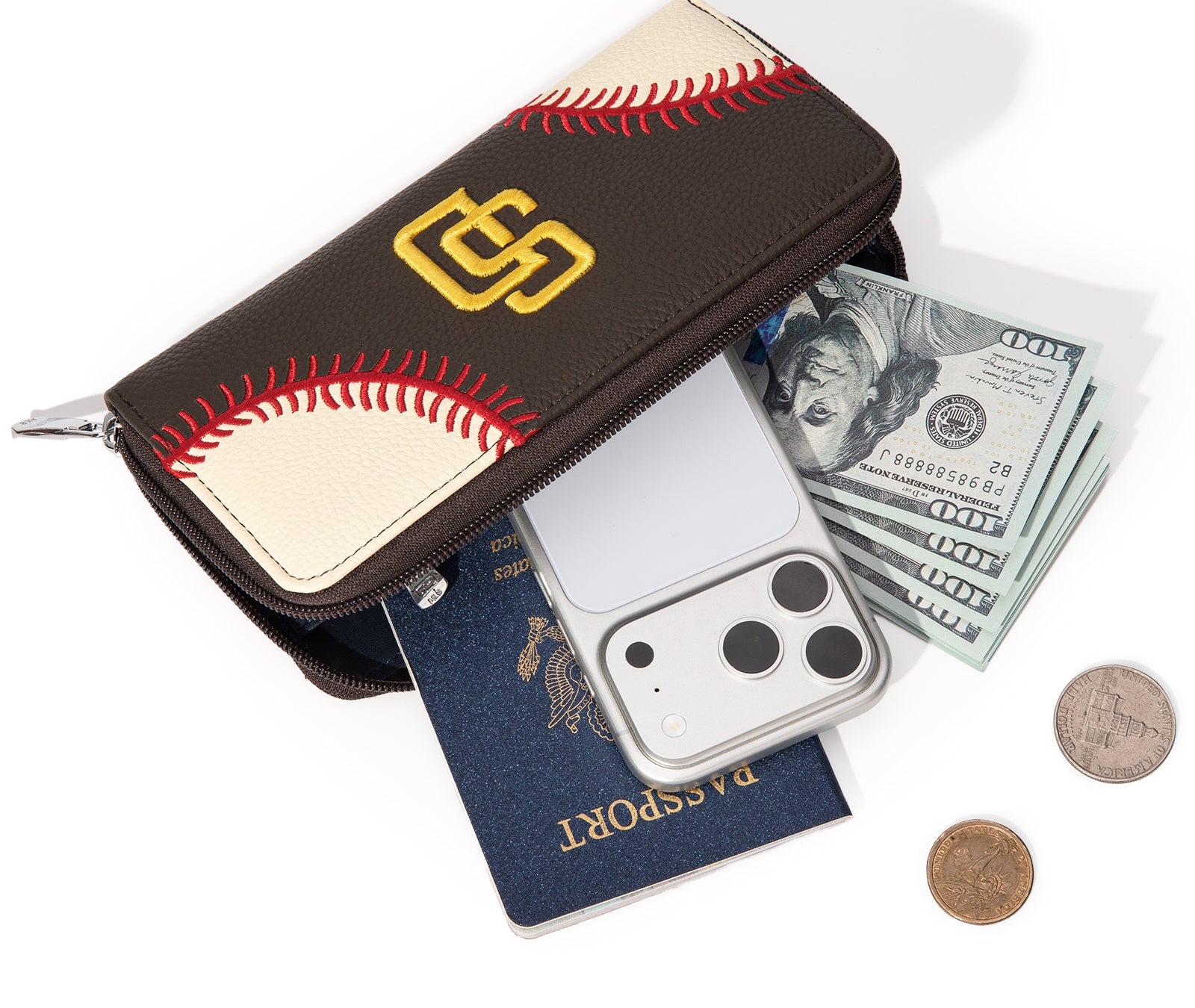 MLB-SD112 MLB San Diego Padres Zip Wallet Baseball Stitch Detail