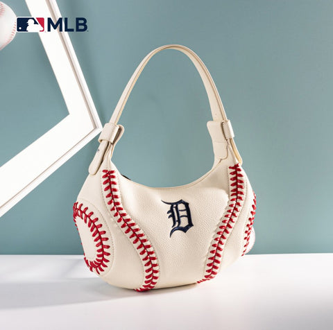 MLB OFFICIAL BASEBALL SMALL TOTE/CROSSBODY Made of PU Leather, this hobo bag/shoulder bag has::- Embroidered Detroit Tigers logo Baseball stitch Top zipper closure Inside...