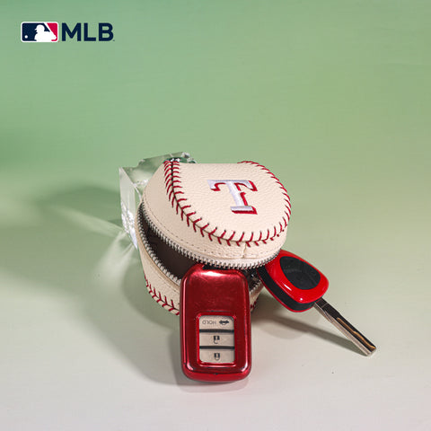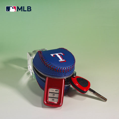MLB OFFICIAL BASEBALL KEY CHAIN POUCH   Made of PU Leather, this baseball key chain pouch has: Embroidered Texas Rangers logo  Baseball stitch Zipper closure MLB logo applique...