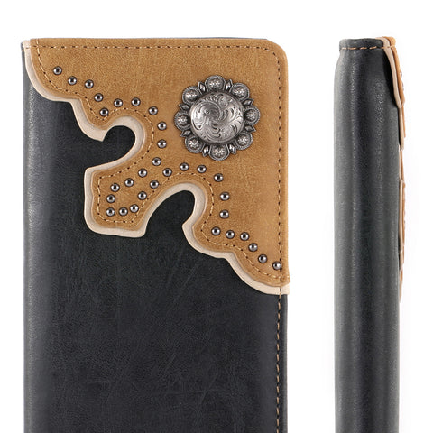 MW-606 Antique Silver Berry Concho Men's Bifold Long PU Leather Wallet
