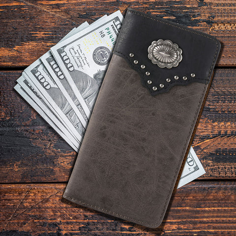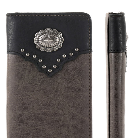 MW-609 Color Block Navajo Concho Men's Bifold Long PU Leather Wallet