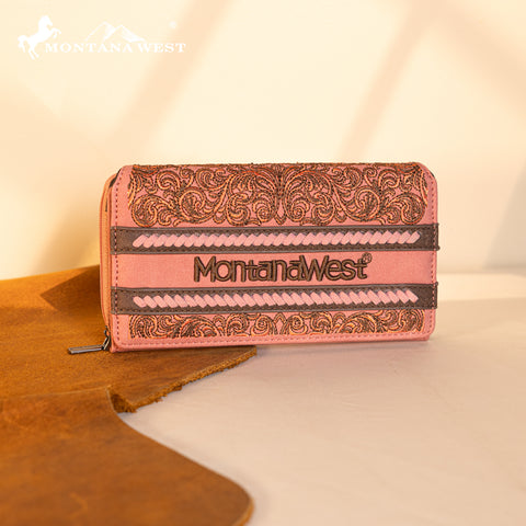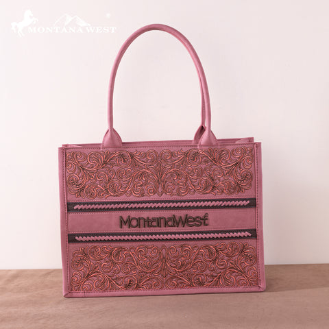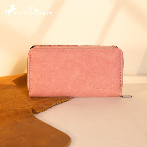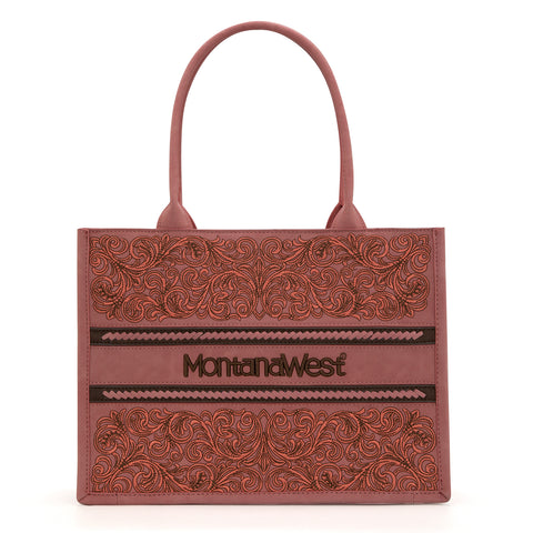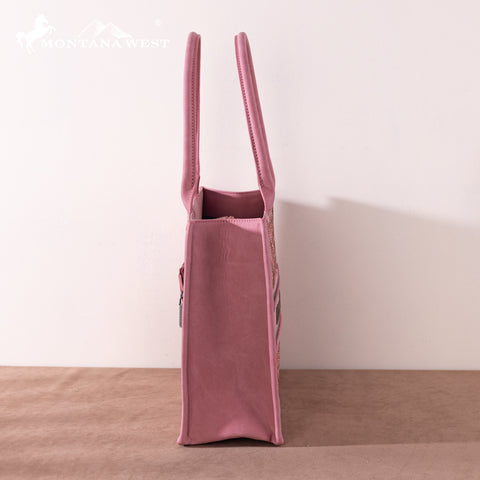 MW1279G-8119WPK Montana West Embroidered Collection Concealed Carry Tote Wallet Set -Pink