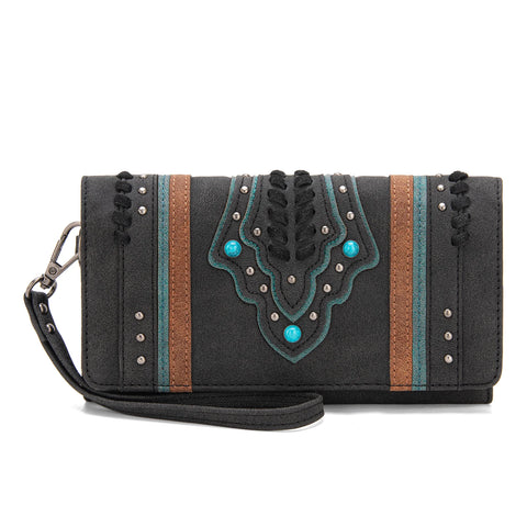MW1280G-8317WBK Montana West Buckle Collection Concealed Carry Tote Wallet Set- Black
