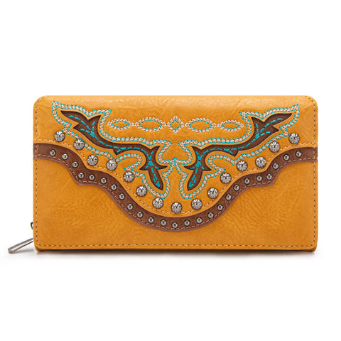 MW1281G-9360WMST Montana West Fringe Embroidered Concealed Carry Tote/Crossbody Wallet Set-Mustard
