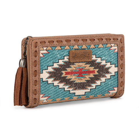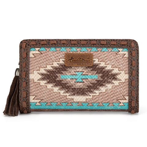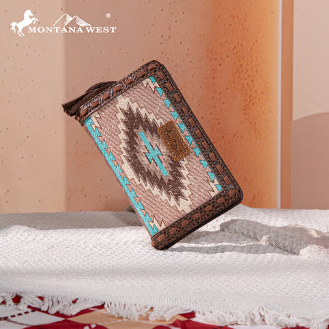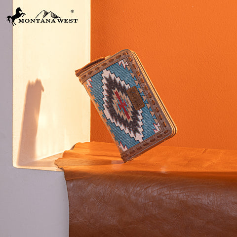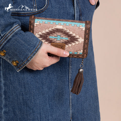 MW1316-W020 Montana West Tooled Aztec Denim Bi-Fold Wallet